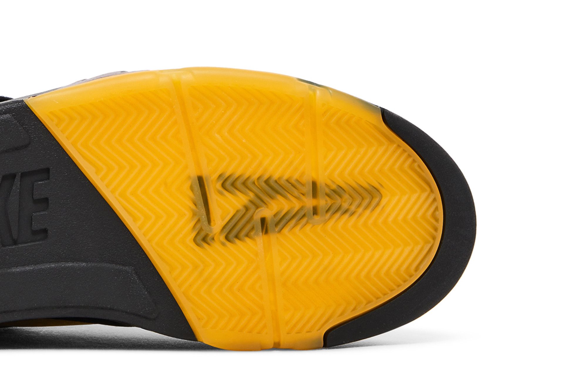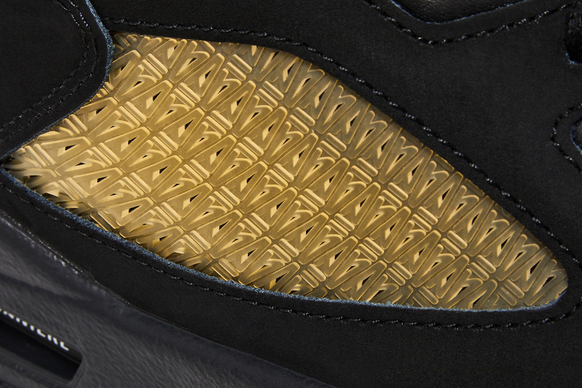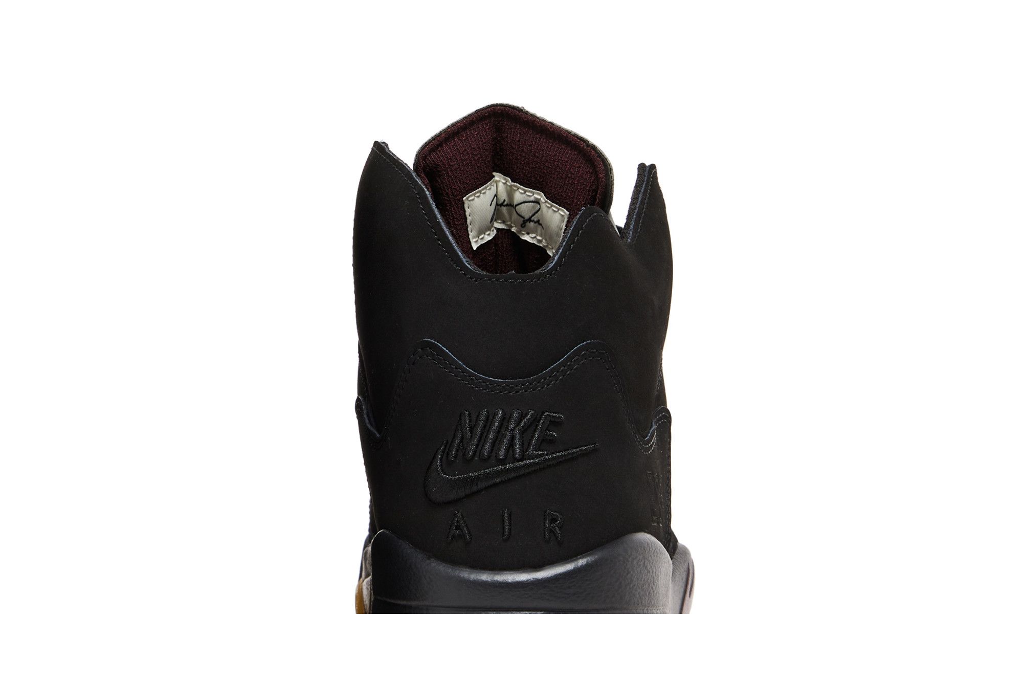 The A Ma Maniére x Air Jordan 5 Retro ‘Dusk’ reunites the creative partners on a two sneaker collaborative pack. This pair carries a black nubuck upper, updated with a slimmed-down collar and pre-yellowed quarter panel netting formed with an interlocking series of A Ma Maniére’s signature ‘A’ logo. ‘Nike Air’ branding is embroidered on the back heel in tonal fashion, while silver reflective tongues display mismatched Jumpman and A Ma Maniére branding. The sneaker sits atop a matching black polyurethane midsole with shark-tooth detailing in a dark burgundy hue. A pre-aged translucent rubber outsole featuring the Atlanta-based retailer’s logo provides durable traction underfoot.