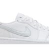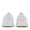 The Air Jordan 1 Low Golf ‘White Gum’ brings a waterproof upper, featuring a signature Swoosh in Platinum Tint. A woven Jumpman tag embellishes the tongue, while a debossed Wings logo graces the back tab. The sneaker rests on a white rubber midsole with an encapsulated Air-sole unit in the heel. Underfoot, the gum rubber outsole utilizes an integrated traction pattern based on the original Air Jordan 1.