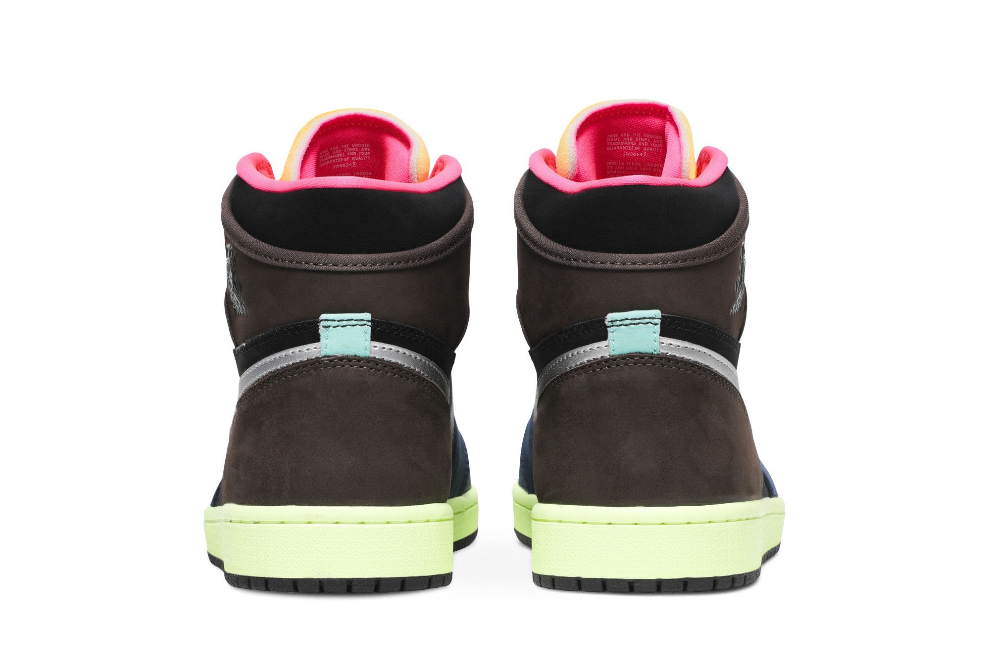 Inspired by Japan’s capital city, the Air Jordan 1 Retro High ‘Tokyo Bio Hack’ features color blocking that recalls Undefeated’s Nike Dunk High NL collaboration from 2005. The leather and suede upper brings together an eclectic mix of colors, including rustic earth tones, eye-catching vibrant hues and a lone pop of metallic silver on the signature Swoosh. A painted midsole combines with a stitched Nike tag atop the exposed foam tongue for a unique DIY aesthetic.