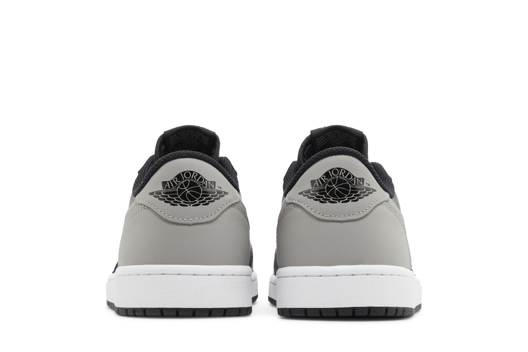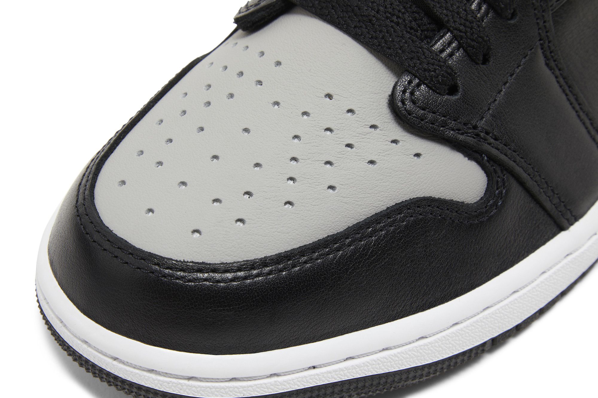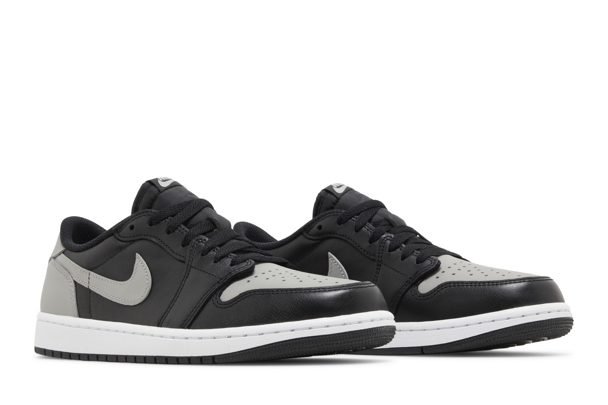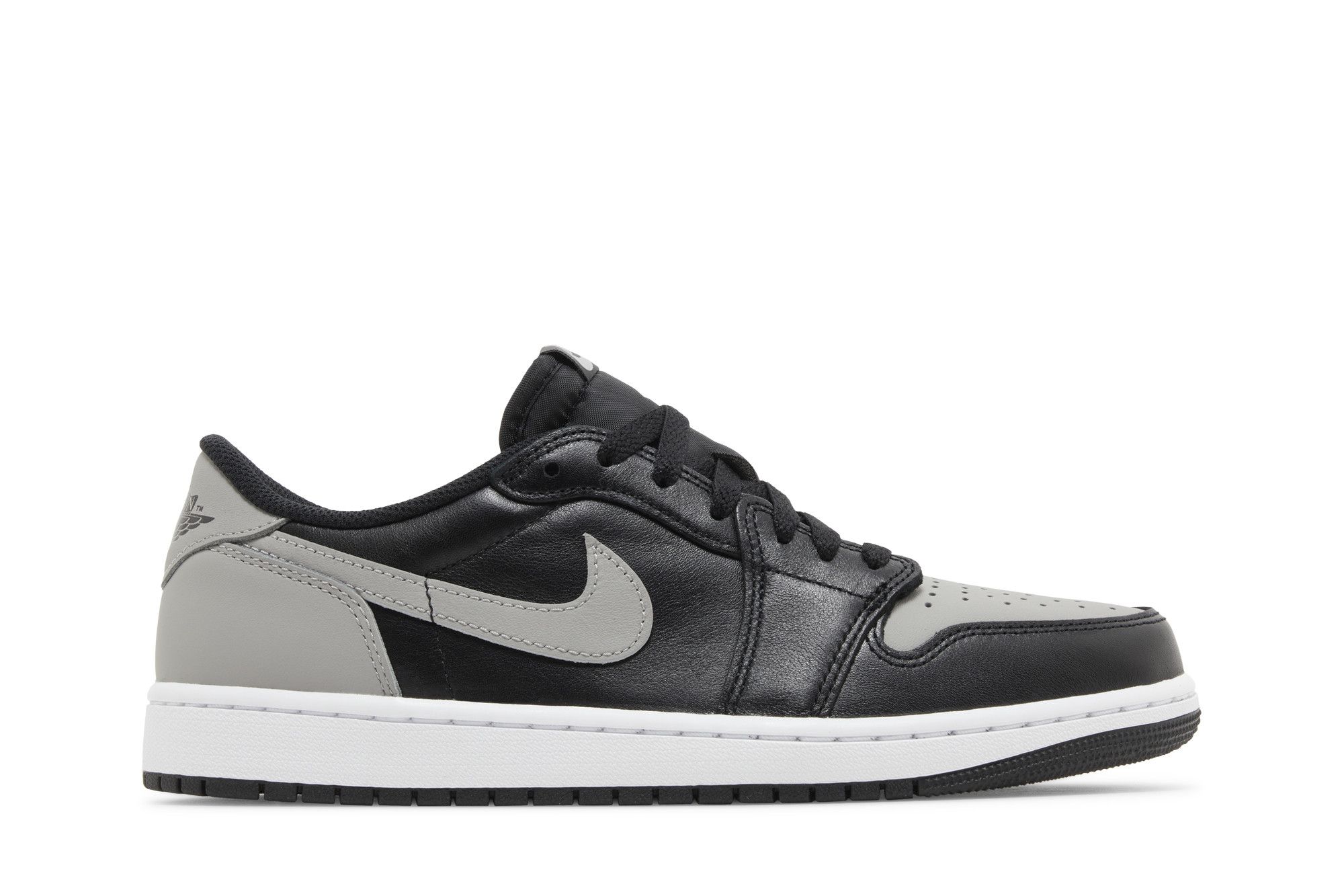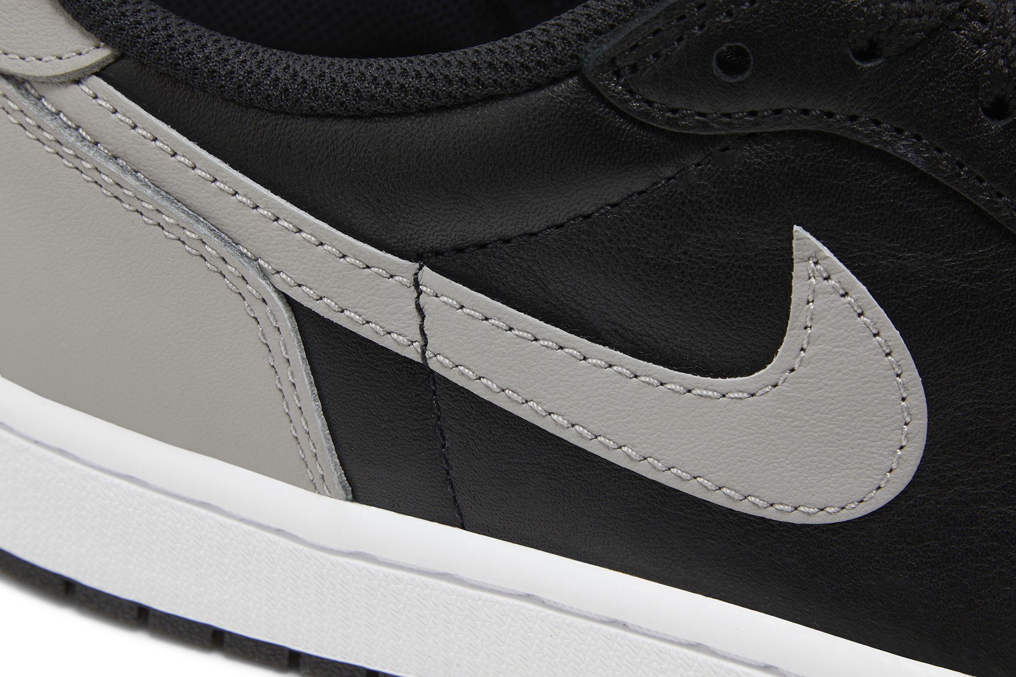 The 2024 edition of the Air Jordan 1 Retro Low OG ‘Shadow’ brings back an original colorway of Michael Jordan’s debut signature shoe. Rendered in low-top form, the vaunted silhouette sports a leather upper, featuring a black base with neutral grey accents on the toe box, Swoosh, heel and back tab. The latter is stamped with the iconic Wings logo, while a woven Nike Air tag decorates the black nylon tongue. The sneaker sits on a white rubber midsole, fitted with an encapsulated Air-sole unit in the heel and supported by a grippy black rubber outsole.