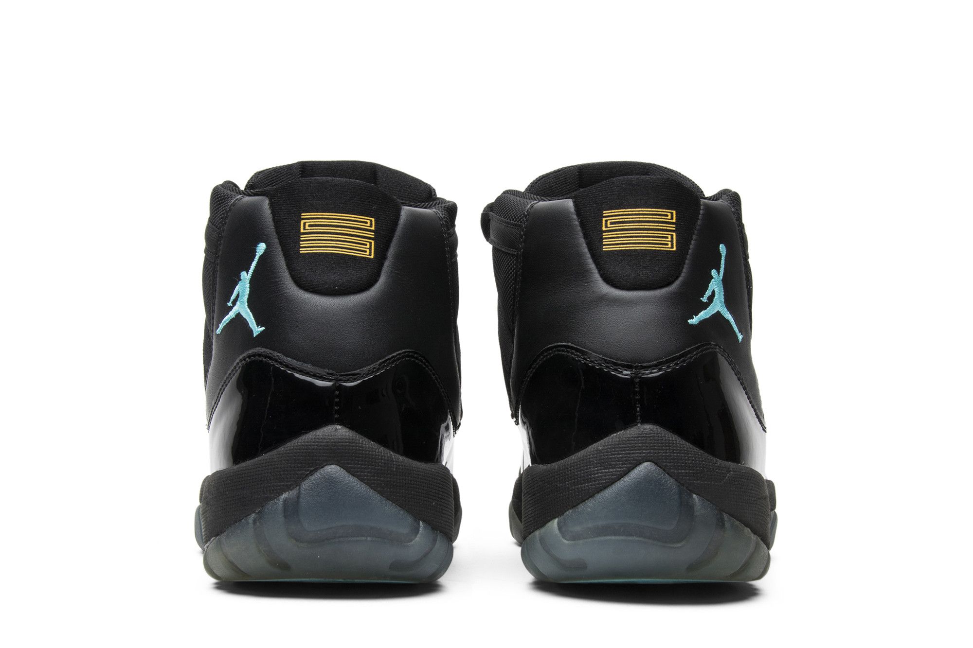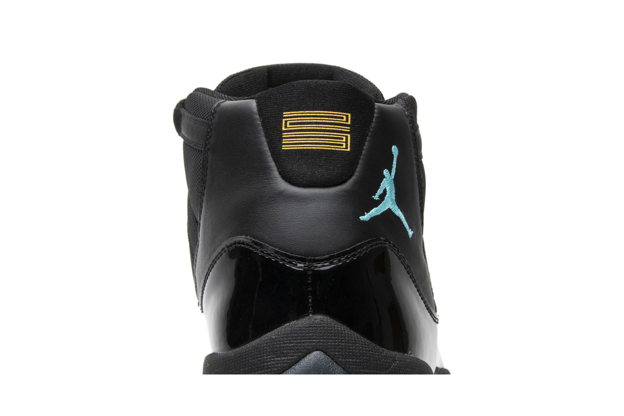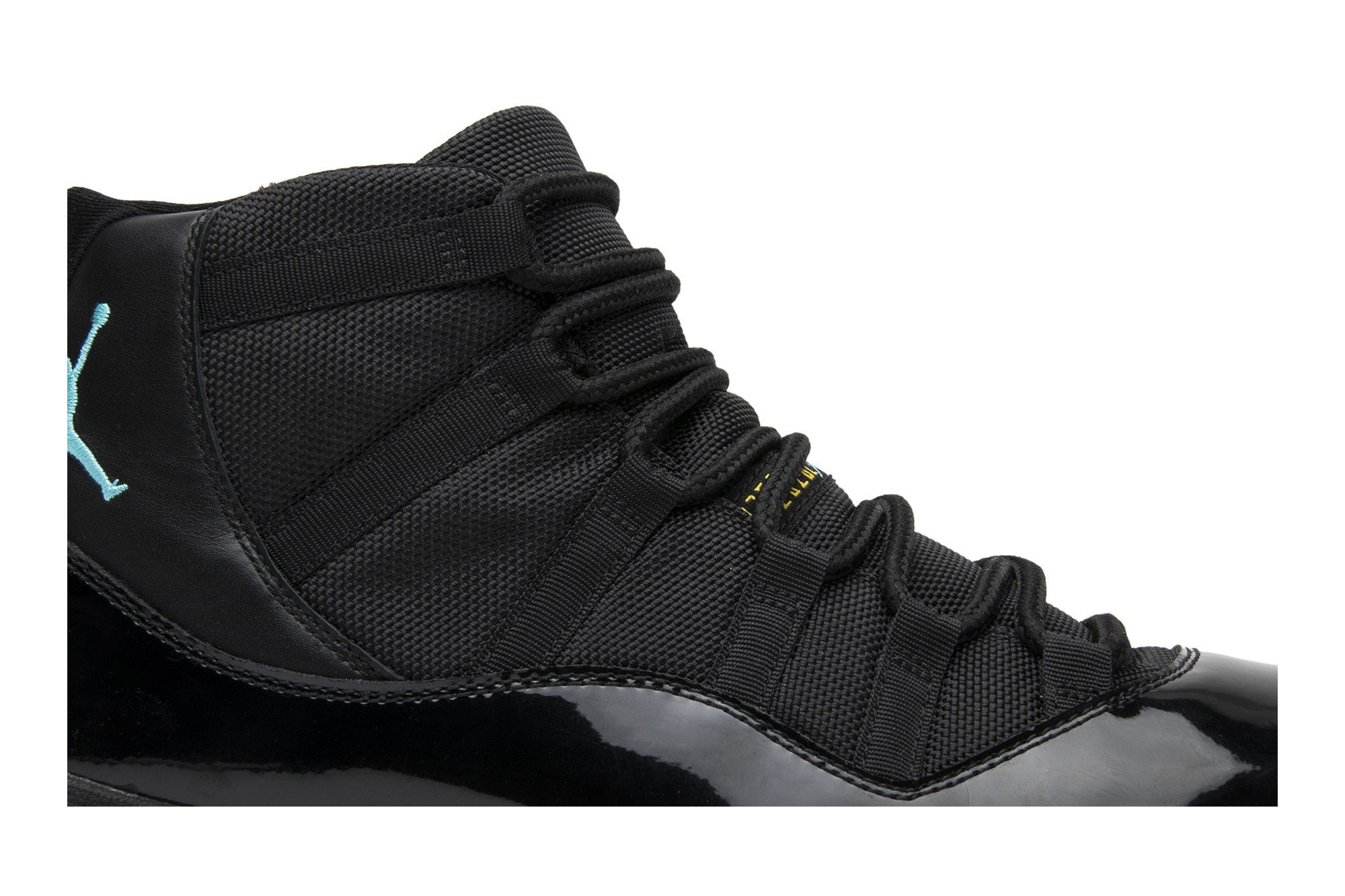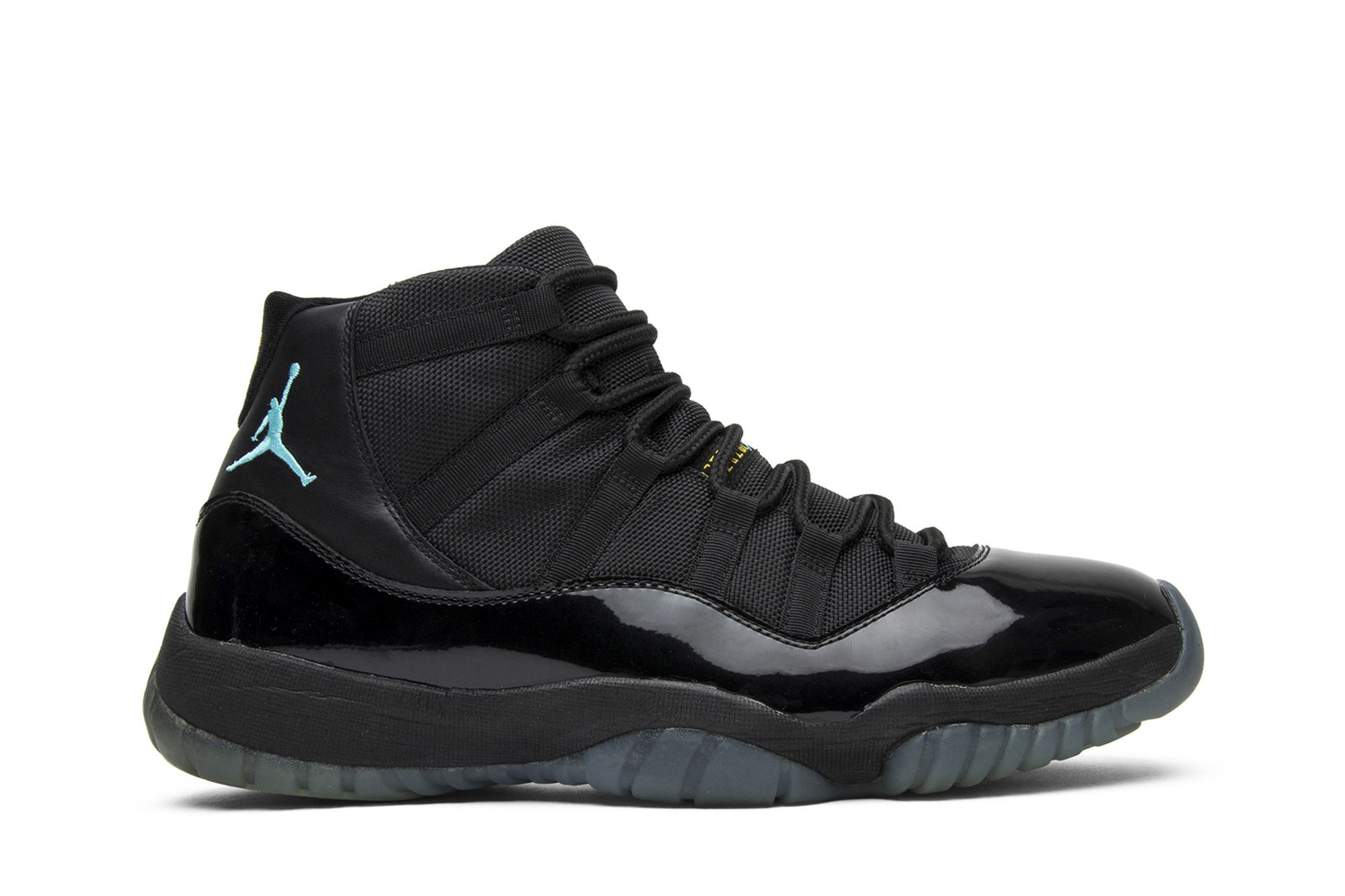 The Air Jordan 11 Retro ‘Gamma Blue’ released in 2013 as Jordan Brand’s requisite AJ11 holiday release. The non-OG colorway features a sleek black finish throughout the upper, constructed from a traditional blend of ballistic mesh and shiny patent leather. Contrasting pops of color arrive via the sneaker’s branding hits, which include a turquoise Jumpman and ‘23’ stamped in Varsity Maize on the heel tab. A cushy Phylon midsole is enhanced with a top-loaded full-length Air unit and supported by a carbon fiber spring plate. A translucent rubber outsole utilizes herringbone traction pods for superior grip.