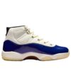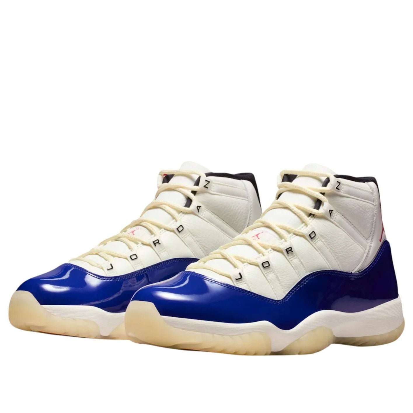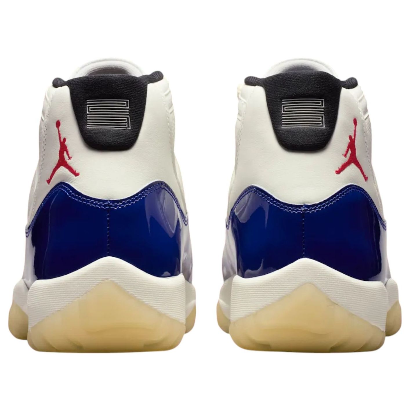 The Air Jordan 11 Retro ‘Rare Air’ features a white leather upper with a shiny patent leather mudguard in Deep Royal Blue. In addition to a crimson Jumpman logo on the lateral collar, branding elements include ‘JORDAN’ spelled out on the webbing eyelets and a stylized ’23’ stamped on the black textile back tab. Lightweight cushioning arrives via a Phylon midsole, fitted with full-length Air-sole cushioning and supported by a translucent rubber outsole.