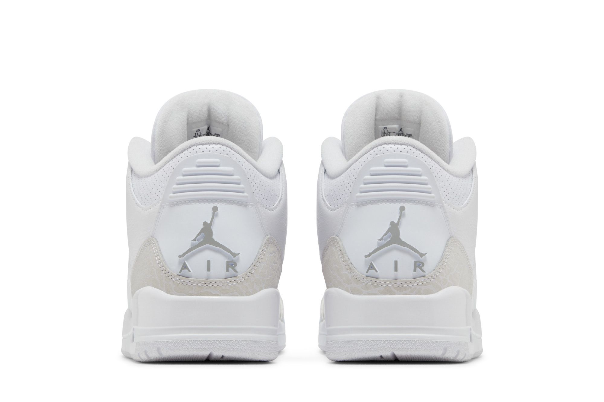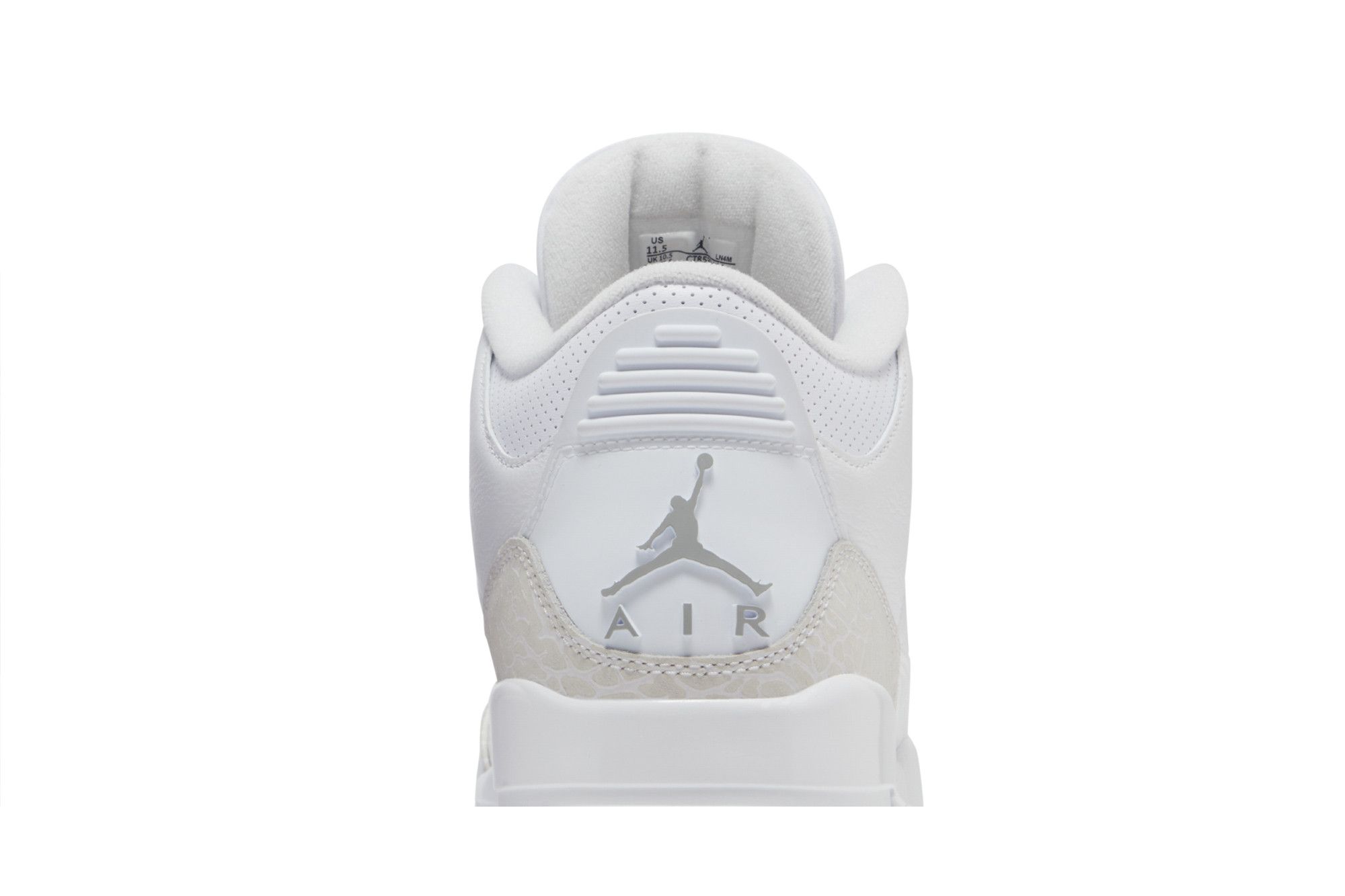 The 2025 edition of the Air Jordan 3 ‘Pure Money’ brings back a blank-slate colorway that originally debuted in 2007. The mid-top features a white tumbled leather upper with tonal elephant print overlays at the forefoot and heel. Matte silver accents land on the molded eyelets, as well as the Jumpman branding hits that adorn the tongue and heel tab. Lightweight cushioning arrives via a white polyurethane midsole with a visible Air-sole unit nestled in the heel.
