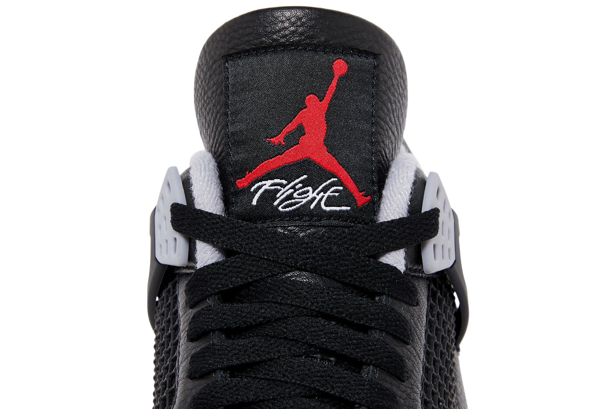 The Air Jordan 4 Retro ‘Bred Reimagined’ makes over the iconic silhouette with a black leather upper, replacing the nubuck material of the original 1989 release. Heritage details include quarter panel netting, grey molded eyelets, and Nike Air branding on the heel tab. Atop the tongue, a woven Flight tag displays a crimson Jumpman logo. The mid-top is mounted on a lightweight polyurethane midsole, fitted with encapsulated Air-sole cushioning in the forefoot and an exposed Air unit in the heel. Underneath, a pre-distressed rubber outsole features a herringbone traction pattern for superior grip.