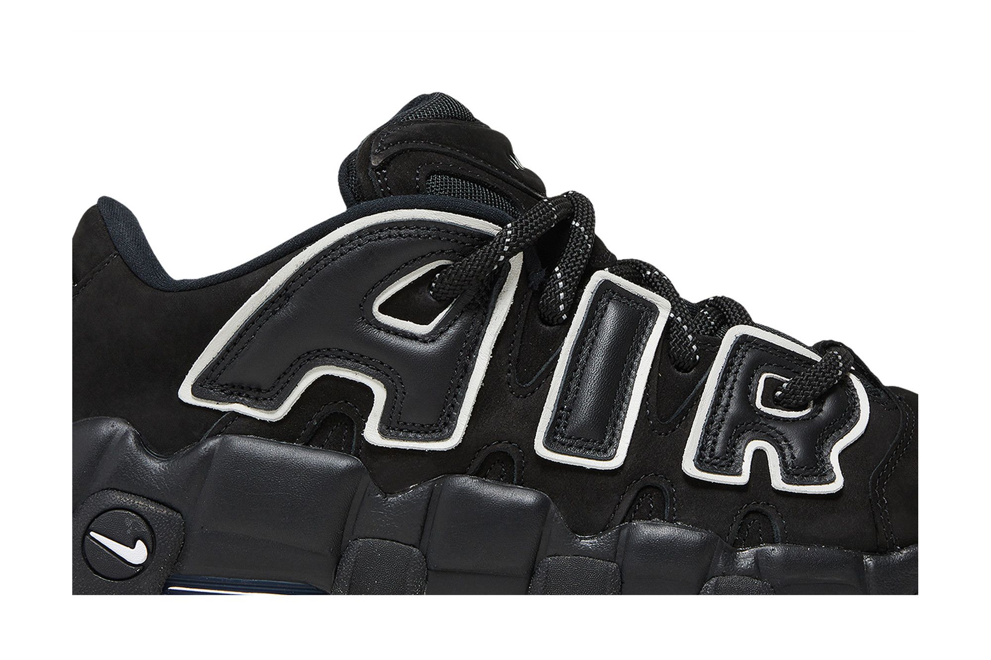The AMBUSH x Nike Air More Uptempo Low ‘Black’ presents Yoon Ahn’s modern interpretation of the vintage basketball silhouette. Inspired by a chunky 2000s skate shoe, the low-top sports a black nubuck upper with signature ‘AIR’ branding in black leather letters outlined in white trim. ‘AMBUSH’ is inscribed on the tongue, while a jeweled Swoosh adorns the back heel. The sneaker rests on a matching black Phylon midsole, marked with an embossed AMBUSH wordmark at the rear and fitted with visible Air-sole cushioning for a comfortable ride.