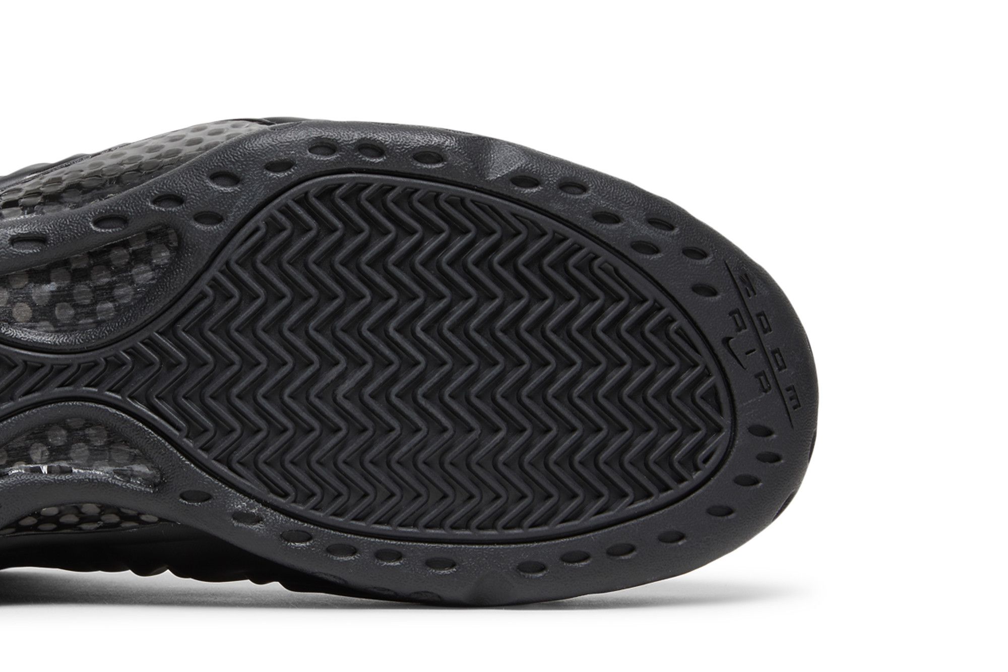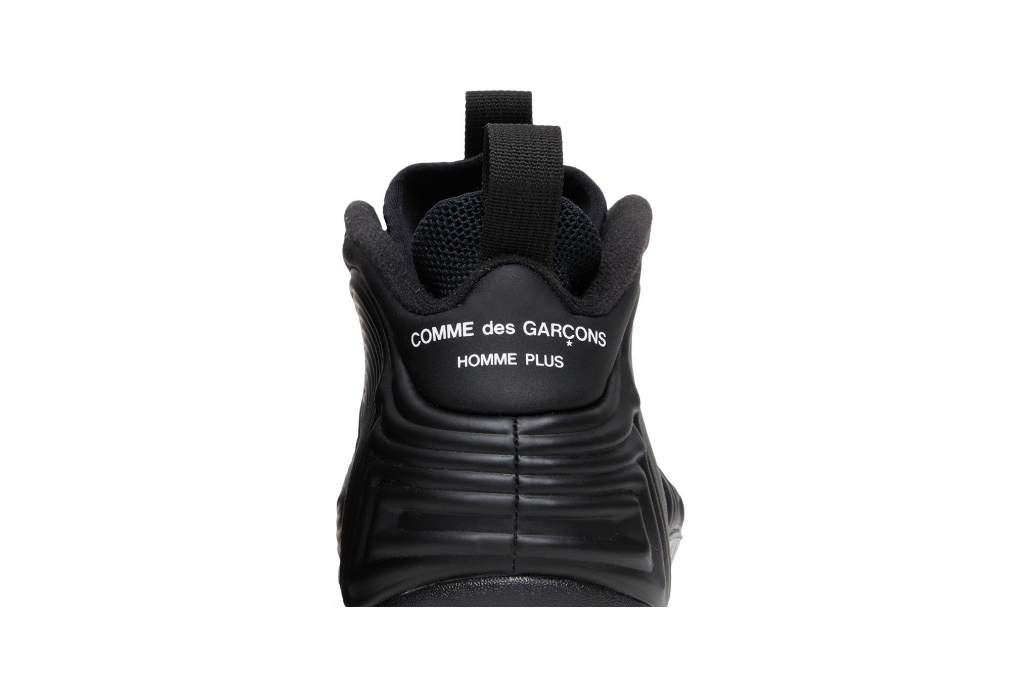 The Comme des Garçons Homme Plus x Nike Air Foamposite One ‘Black’ delivers Rei Kawakubo’s monochrome take on the vintage hoops shoe originally released in 1997. Unveiled in Tokyo at the CDG Homme Plus Fall/Winter 2021 runway show, the sneaker features a blacked-out synthetic upper covered in wavy circular patterns. Branding elements include an embroidered mini-Swoosh on the lateral forefoot and ‘Comme des Garçons Homme Plus’ inscribed on the heel tab. Underfoot, Penny Hardaway’s 1 Cent logo decorates the herringbone-traction rubber outsole.