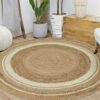 Elegant Handcrafted Jute Area Rug – Eco-Friendly Round Beige Mat