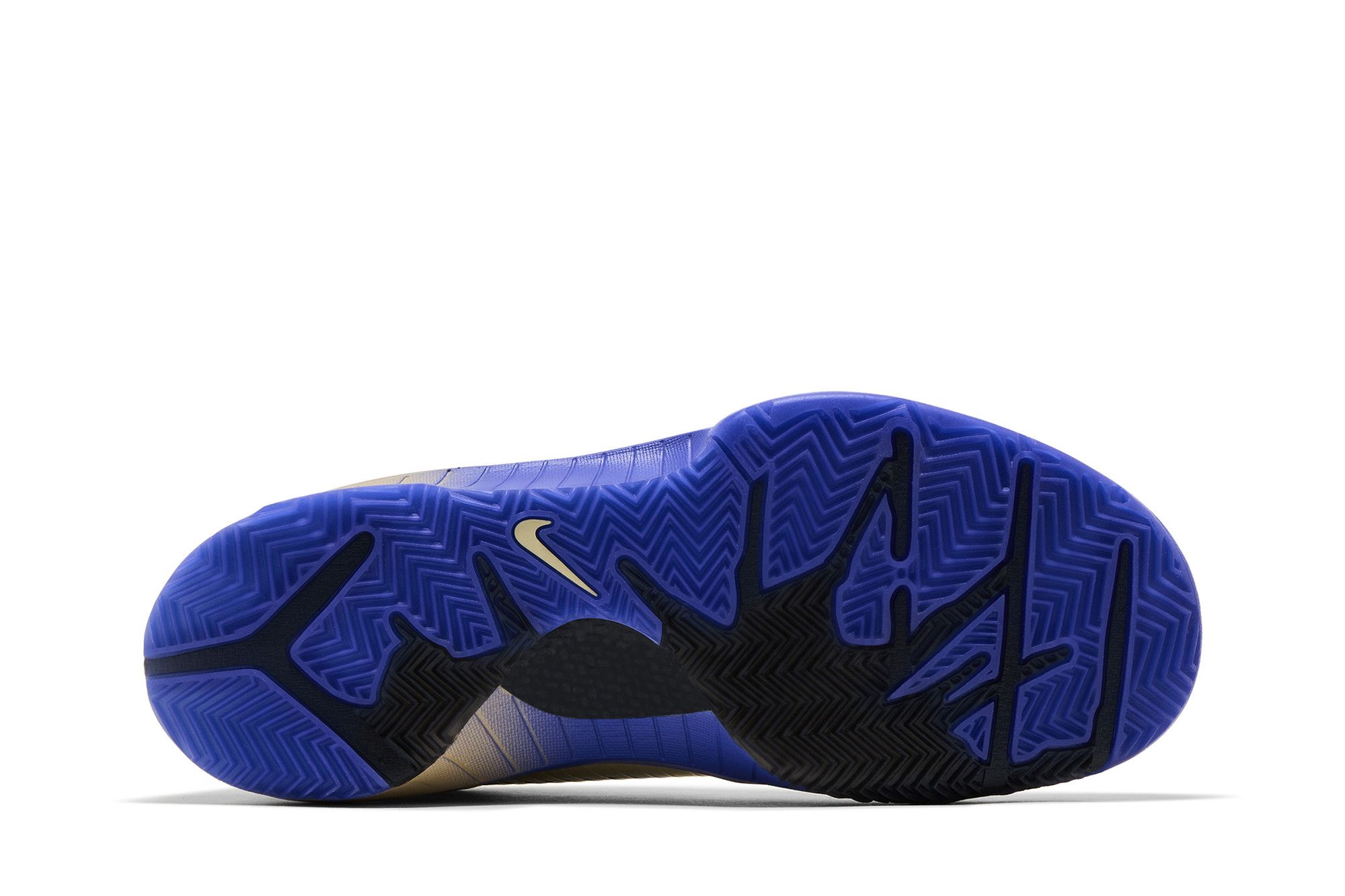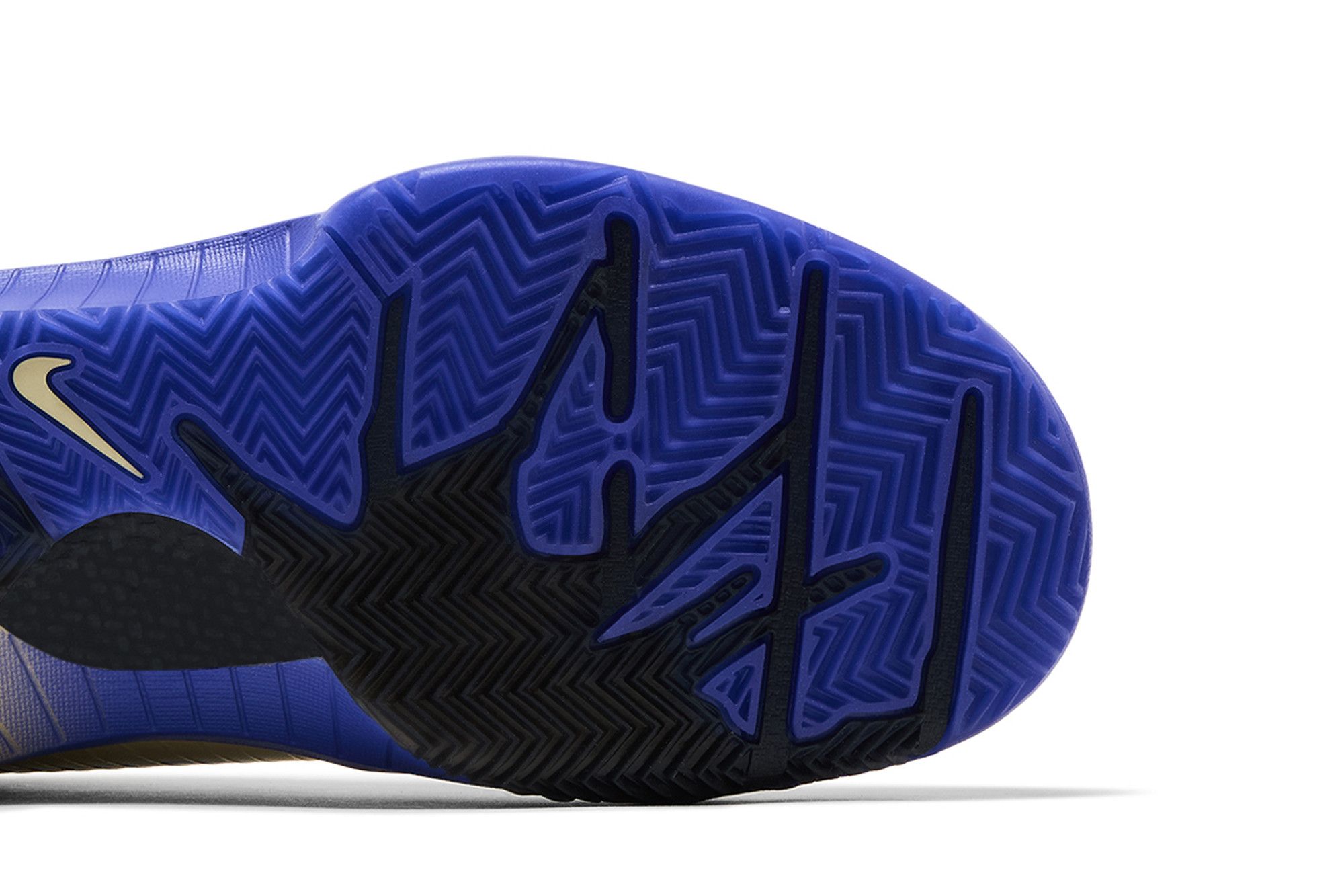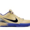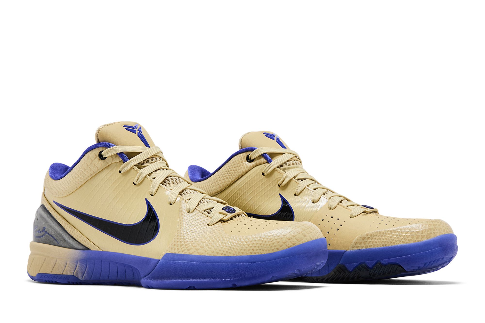 The FC Barcelona x Nike Kobe 4 Protro ‘Away Kit’ pays tribute to Kobe Bryant’s favorite La Liga team. The low-top features a synthetic leather upper in Team Gold with an embossed snakeskin texture on the forefoot overlay and collar. Contrasting black accents make their way to the signature Swoosh and heel counter. Atop the tongue, Kobe’s sheath logo is rendered in Persian Violet, matching the textile collar lining. The same hue is applied in gradient fashion to the lightweight Phylon midsole, fitted with a large-volume Zoom Air unit in the heel.