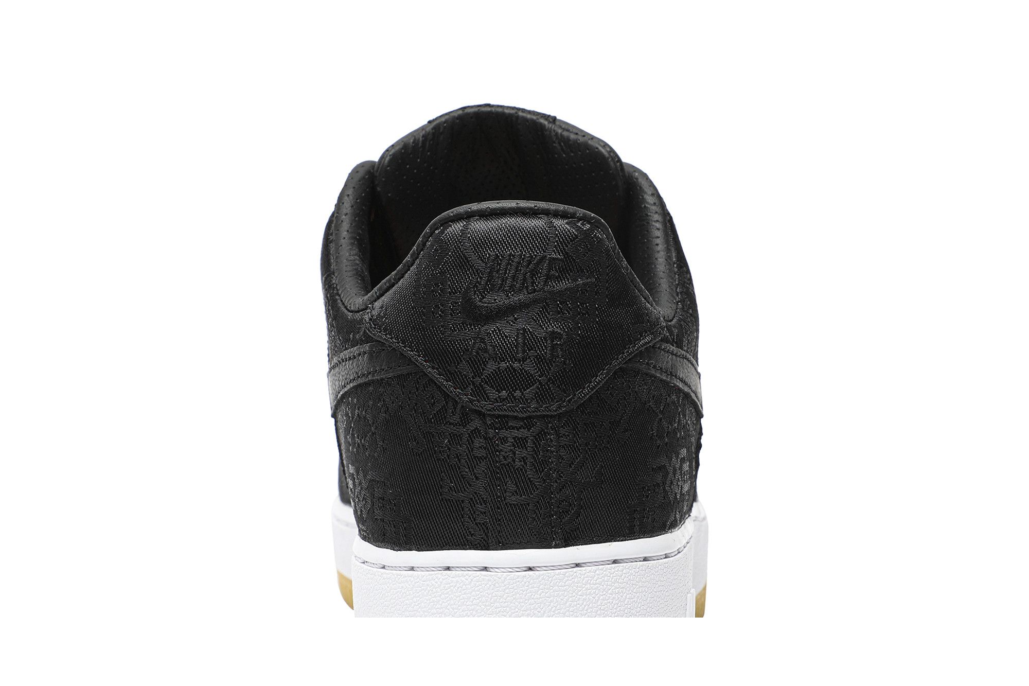 The Fragment Design x CLOT x Air Force 1 ‘Black’ sneaker emerged as a three-way collaborative creation in December 2019. The shoe remakes Nike’s 1982 classic AF1 silhouette with a patterned silk upper that can be burned or worn away to reveal an alternate design. Fragment Design, CLOT and Nike branding appear together on the red insole. Below, an Air-Sole construction provides responsiveness, finished with rubber tread.