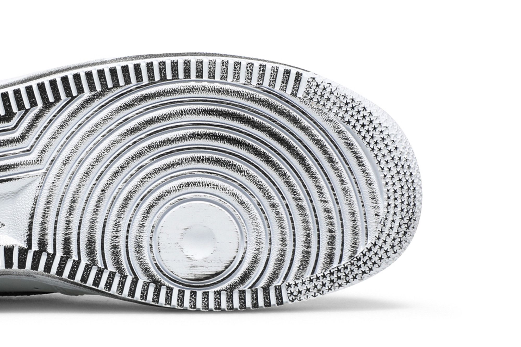 The G-Dragon x Nike Air Force 1 ‘07 ‘Para-Noise 2.0’ is the follow-up colorway to the 2019 Air Force 1 collaboration undertaken with the Korean hip hop star. This pair essentially flips the color blocking of the original, featuring a black Swoosh on a white leather upper, its top layer designed to wear away and reveal custom artwork created by G-Dragon. Additional flourishes include decorative eyelet pins, an embroidery daisy atop the tongue and crude brushstroke effects on the midsole.