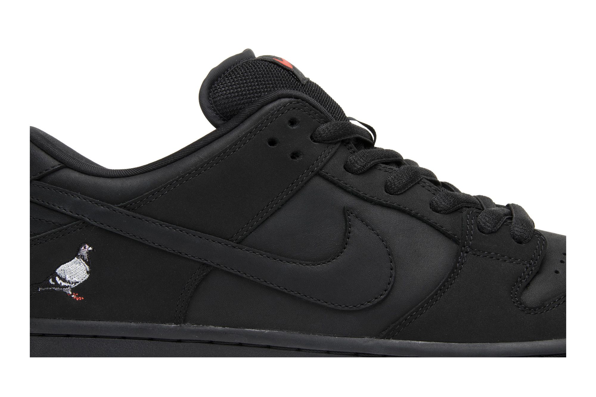 Released in November 2017, the Nike Jeff Staple x Dunk Low Pro SB ‘Black Pigeon’ was inspired by Staples’ classic 2005 ‘Pigeon’ colorway. The shoe features a black nubuck and Stetson waterproof leather upper with a black midsole and a sienna outsole. It also comes with the original’s padded thick tongue and the iconic Pigeon logo embroidered on the heel.