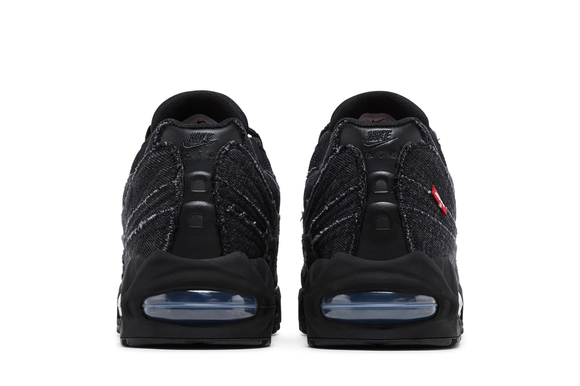 Drawn from a collaborative three-piece pack, the Levi’s x Nike Air Max 95 OG ‘Black Anthracite’ showcases a black denim upper with frayed edges for a pre-distressed aesthetic. Heritage details remain intact, including mesh paneling that partially obscures the lacing system, as well as an embroidered Air Max logo atop the tongue. Additional branding elements include a mini-Swoosh on the lateral heel, accompanied by the iconic red Levi’s tab.