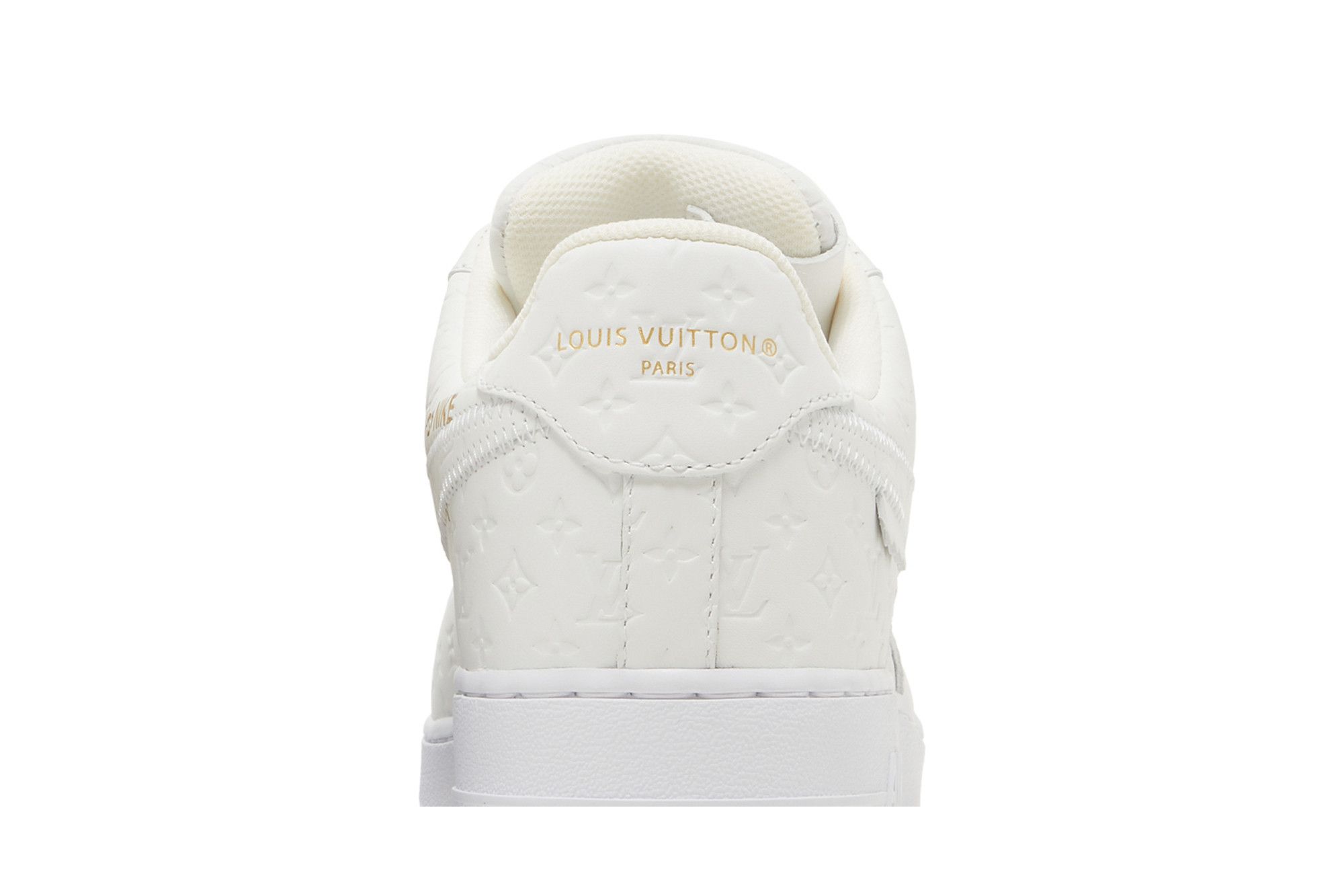 The Louis Vuitton x Air Force 1 Low ‘Triple White’ is taken from a larger collaboration conceived by Virgil Abloh, who was serving as artistic director of the French luxury brand’s menswear line before his untimely passing in 2021. While this white-on-white colorway bears the design DNA of Bruce Kilgore’s original 1982 creation, the premium build is a product of Louis Vuitton craftsmanship. Assembled in Italy, the low-top features a debossed Monogram pattern throughout the white calf leather upper. Louis Vuitton branding appears on the sneaker’s back tabs and off-center tongue tags, while Abloh’s signature Helvetica text is stamped in gold lettering across the medial side. The retro silhouette sits atop traditional rubber cupsole, complete with encapsulated Air-sole cushioning in the heel.