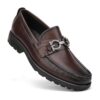 Men’s Coffee Leather Loafers with Metal Buckle – Slip-On Dress Shoes