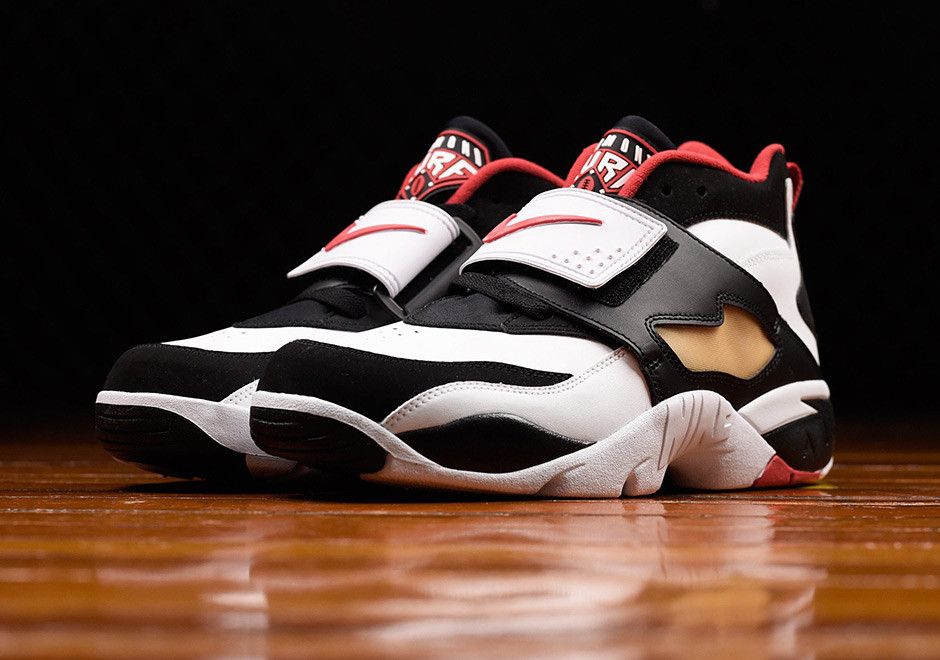 Deion Sanders’ signature cross-trainer from 1994 was originally built to withstand his rigorous football and baseball training programs. The Air Diamond Turf 2017 appears in its original colorway, featuring a black and white leather upper construction that’s enhanced with a leather midfoot strap for a locked-down fit. The mid-top design is accented with hits of Sport Red on the branding, outsole and lining.