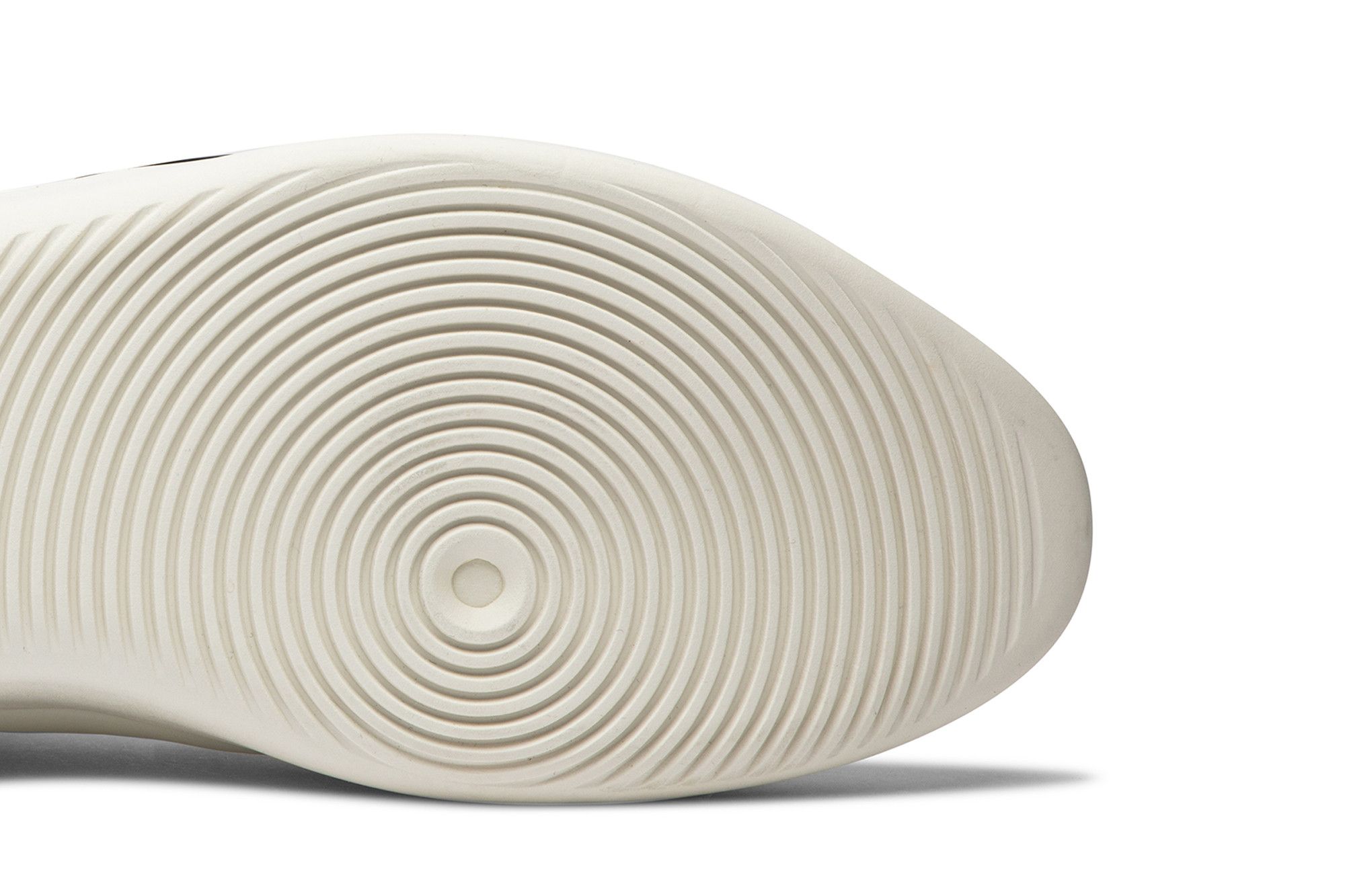 A collaboration between Nike and fashion designer Jerry Lorenzo, the Nike Air Fear Of God 1 merges performance attributes and luxury street style. This ‘Sail’ version—debuted in June 2019—utilizes a mesh and suede upper with an internal heel tab. A TPU cage supports the laces, which reconfigure for a variety of looks. The matching, futuristic midsole features sidewall text for a technical look and visible double stacked Zoom Air cushioning. Concentric circle outsole tread nods to the brand’s court heritage.