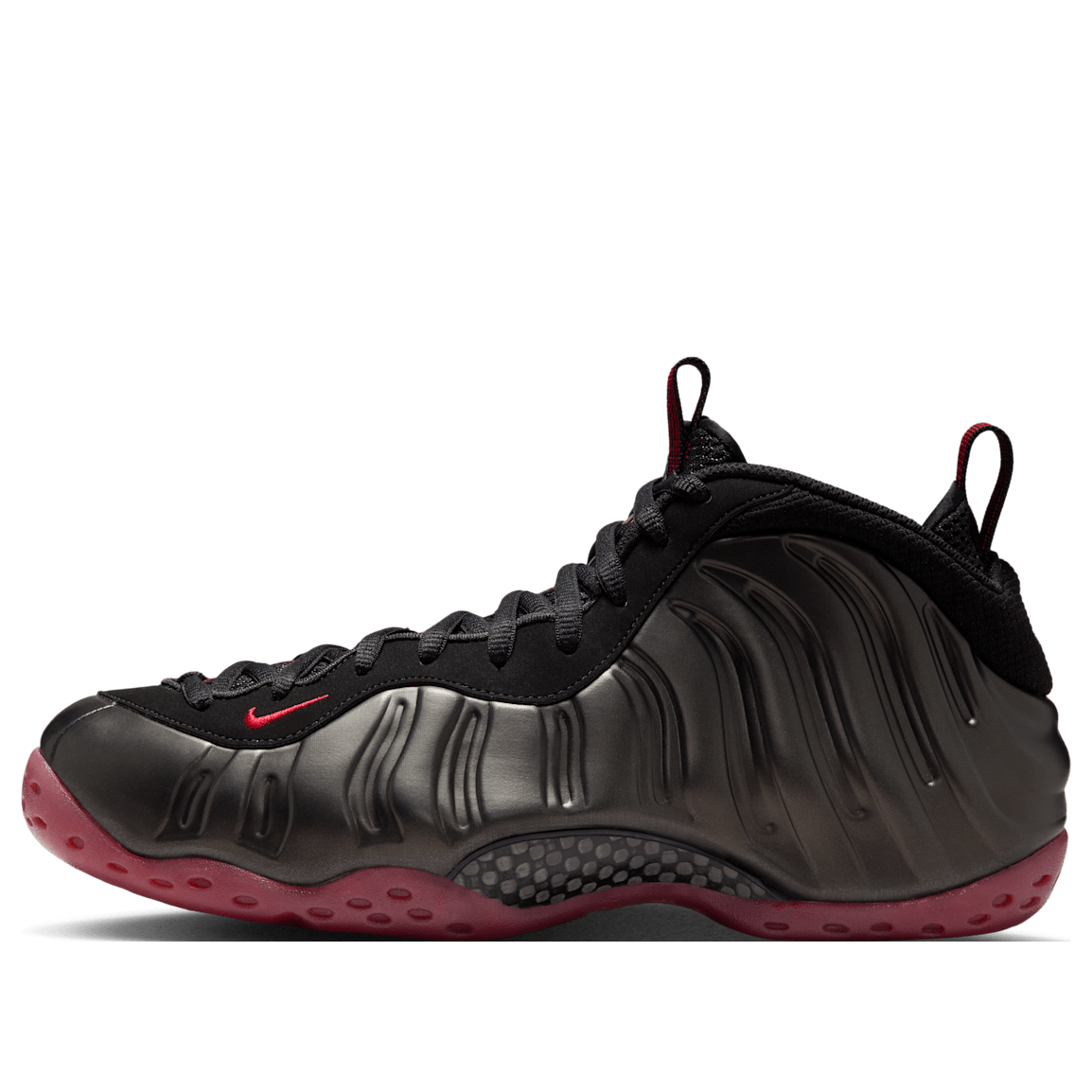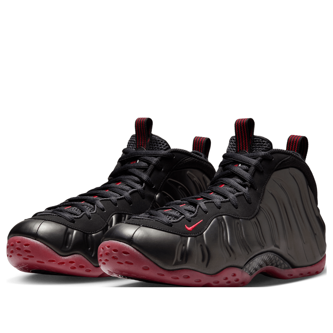 The 2025 edition of the Nike Air Foamposite One ‘Cough Drop’ brings back a two-tone colorway of the retro hoops shoe, featuring a black Foamposite upper made with liquid polyurethane poured into a mold. Matching black nubuck is utilized on the eyestay, marked with a red embroidered mini-Swoosh on the lateral side. Penny Hardaway’s 1 Cent logo adorns the tongue and back heel.