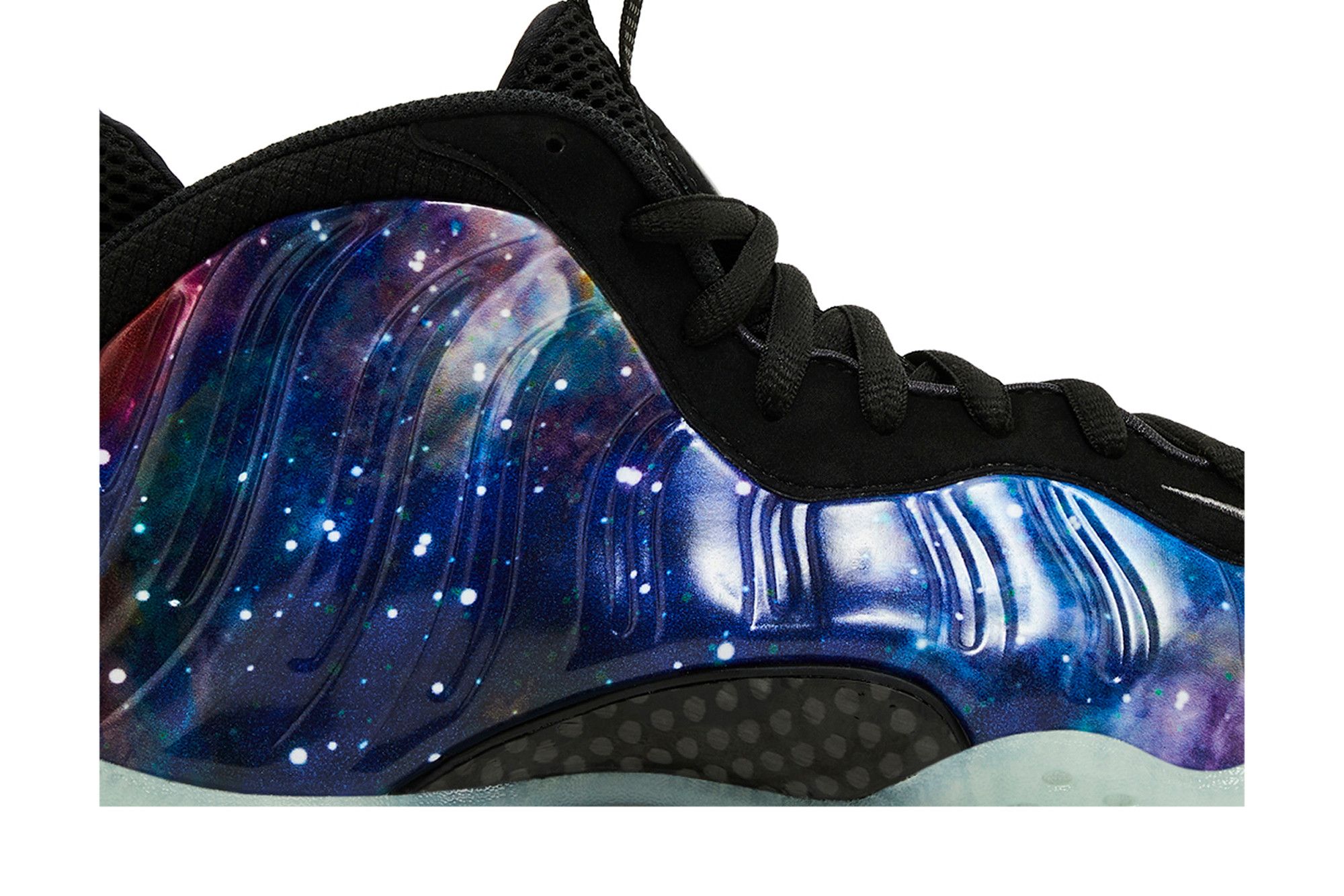 The 2025 edition of the Nike Air Foamposite One ‘Galaxy’ brings back a coveted colorway originally released during NBA All-Star Weekend in 2012. The retro hoops shoe features a nebular design in blue and violet hues throughout the molded Foamposite upper. Black nubuck detailing is utilized on the collar and eyestay, accented with a tonal embroidered mini-Swoosh on the lateral forefoot. A glow-in-the-dark translucent rubber outsole yields durable traction underfoot.