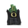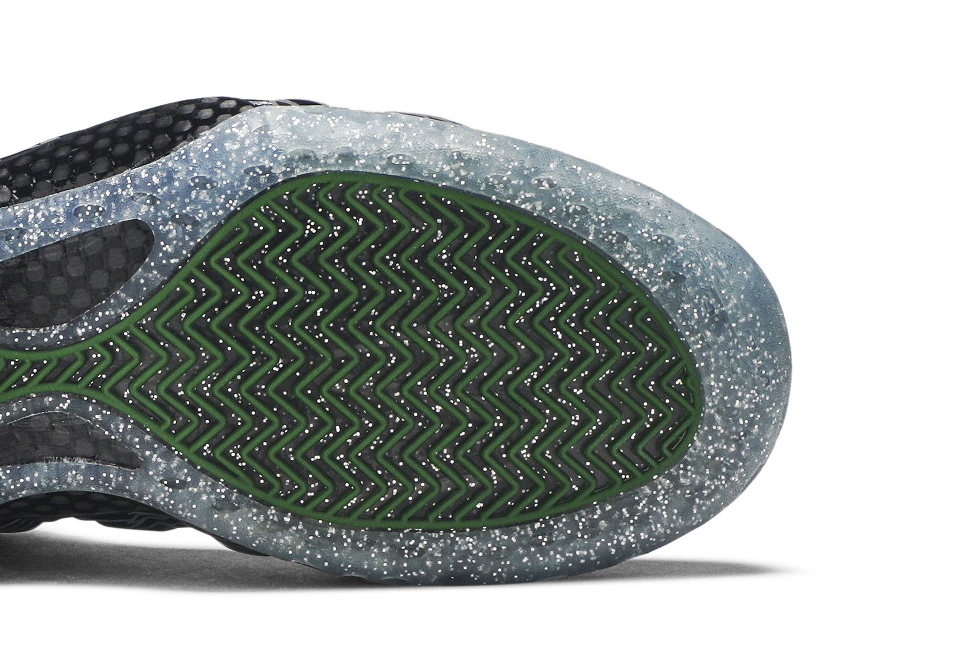 Recognized as one of Penny Hardaway’s signature shoes, the Air Foamposite One gets a December 2013 remake in a unique colorway that pays homage to the Oregon Ducks. A feather motif is printed across the liquid-inspired Foamposite shell upper with Apple Green laces, pull tabs and a mesh bootie to accent this stealthy base. The college football team’s logos emblazon the counter, heel and tongue with Yellow Streak detailing. A flecked out clear outsole adds visual texture underfoot.