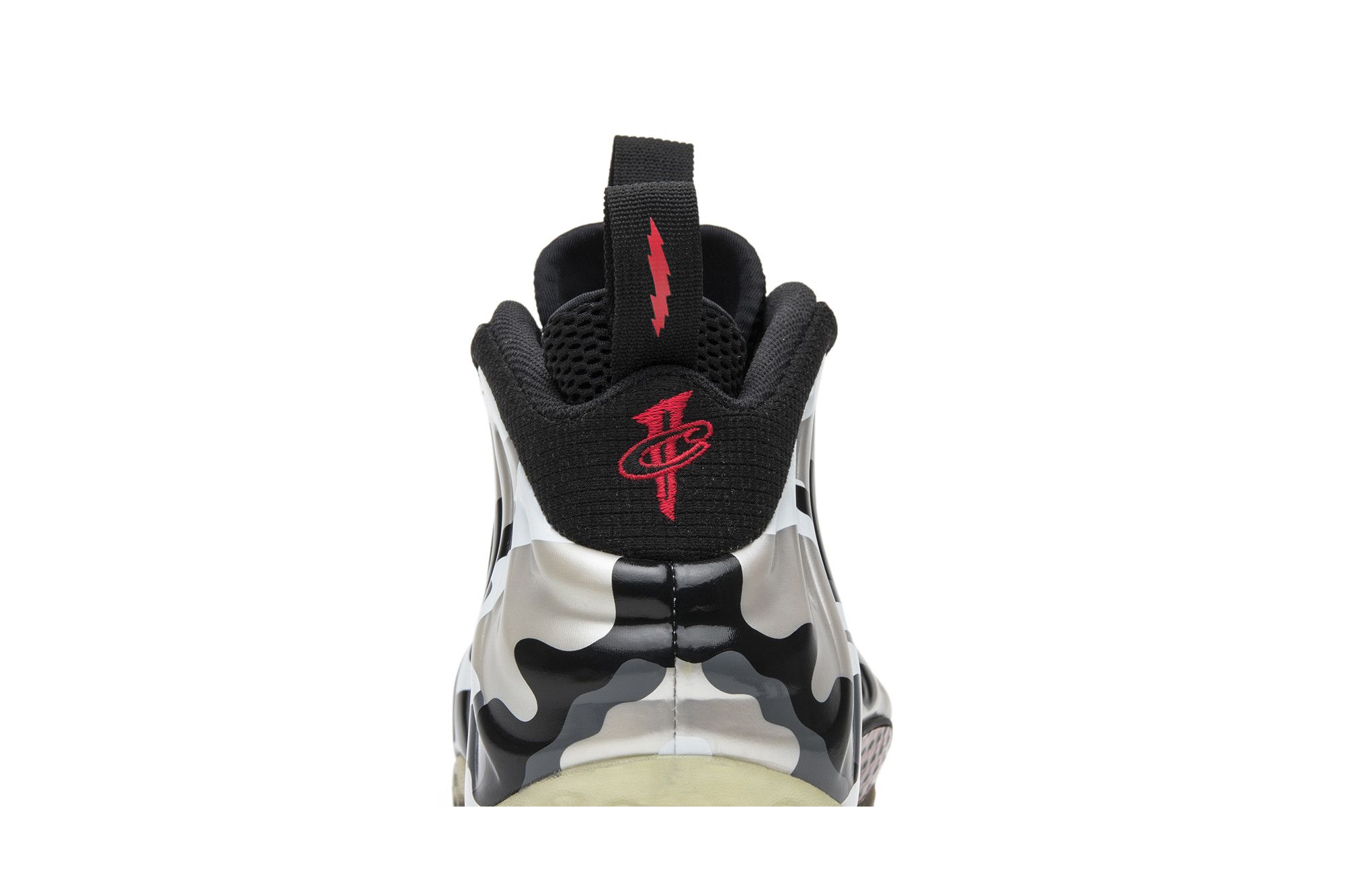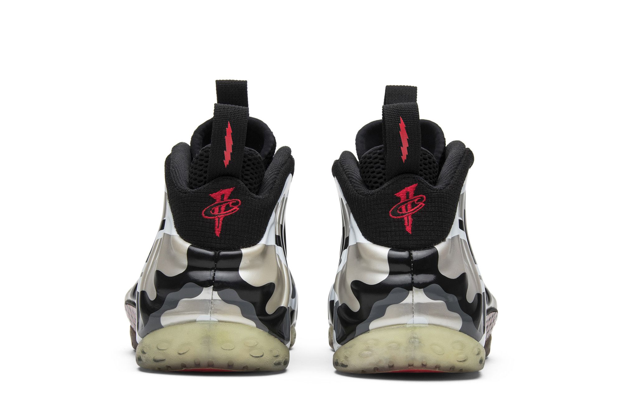 The Nike Air Foamposite One Prm ‘Fighter Jet’ features a black upper with a black, white, and grey camo Foamposite shell. Released in February 2013, the design also includes Hyper Red accents, a translucent outsole, and was sold with special Penny Hardaway dog tags.