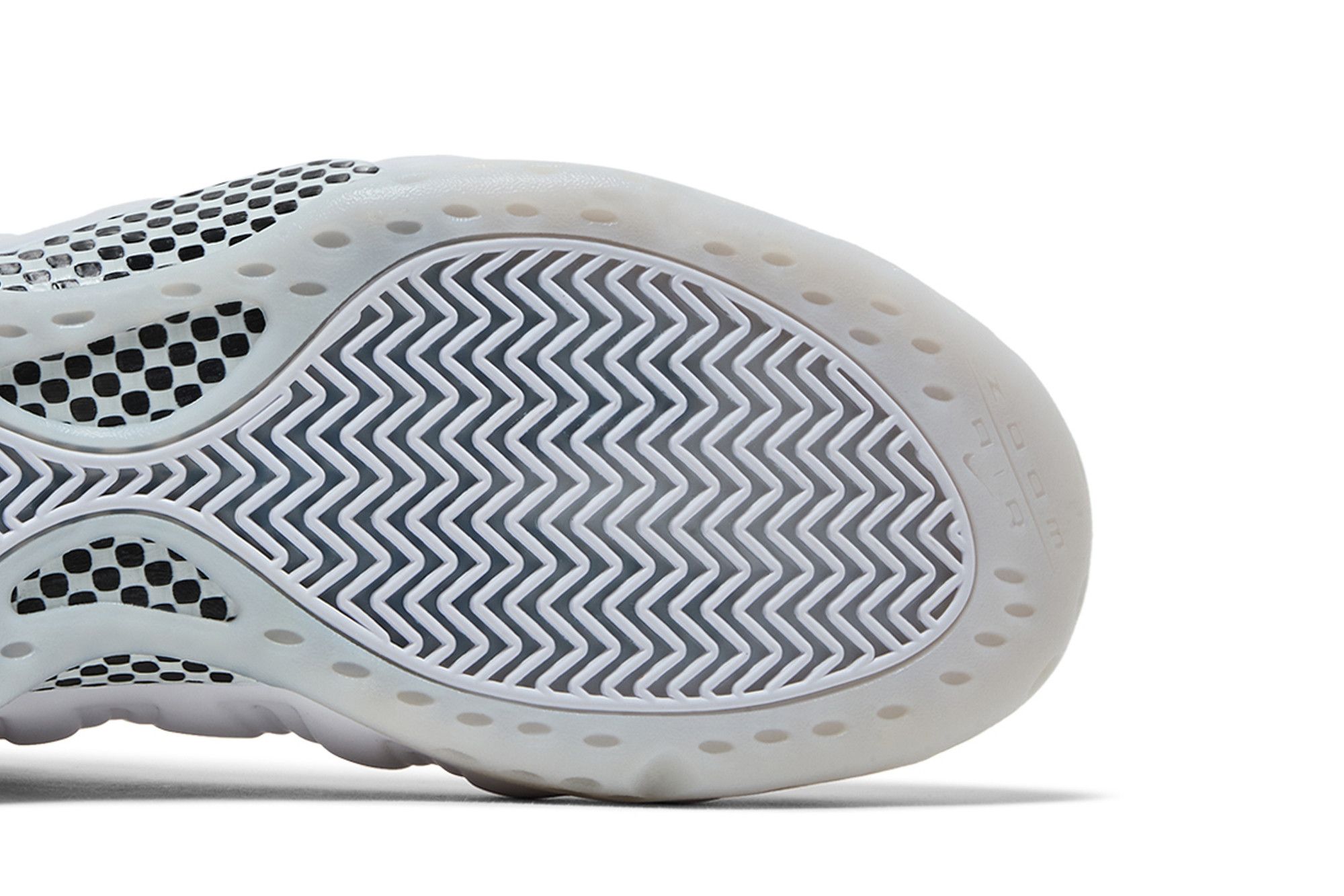 The Nike Air Foamposite One ‘Triple White’ brings a stark white Foamposite upper, featuring tonal leather construction on the eyestay and collar. Penny Hardaway’s 1 Cent logo adorns the back tab and tongue in black. Lightweight cushioning is provided by a concealed foam midsole, augmented with a full-length Zoom Air unit and a second Zoom Air bag in the heel. Underfoot, the rubber outsole features an exposed carbon fiber shank plate in a black-and-white checkerboard pattern.