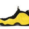 The Nike Air Foamposite One ‘Optic Yellow’ features a bright yellow Foamposite shell and black upper. Released in June 2016, the sneaker also features a black carbon fiber shank and black rubber outsole.