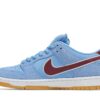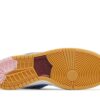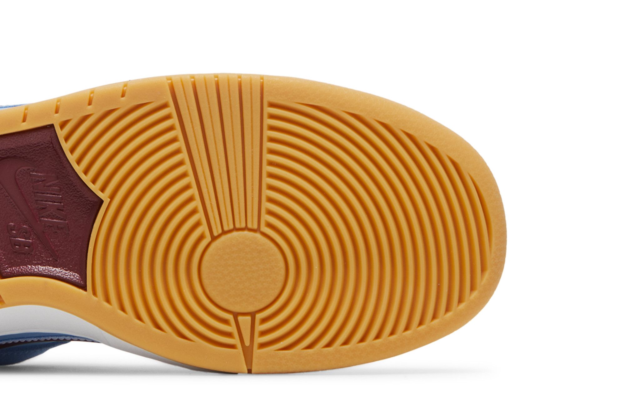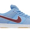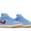 While the retro silhouette is rooted in basketball, the Nike Dunk Low Premium SB ‘Philadelphia Phillies’ shifts the focus to the baseball diamond, featuring a distinctive color palette that pays homage to the historic MLB franchise. The suede upper is finished in Valor Blue, contrasted by a Team Maroon Swoosh outlined in white trim. A Nike SB tag decorates the stuffed tongue, while mismatched interior tags display a cheesesteak graphic on the left shoe and a Liberty Bell graphic on the right. Underfoot, a gum rubber outsole provides grippy traction.