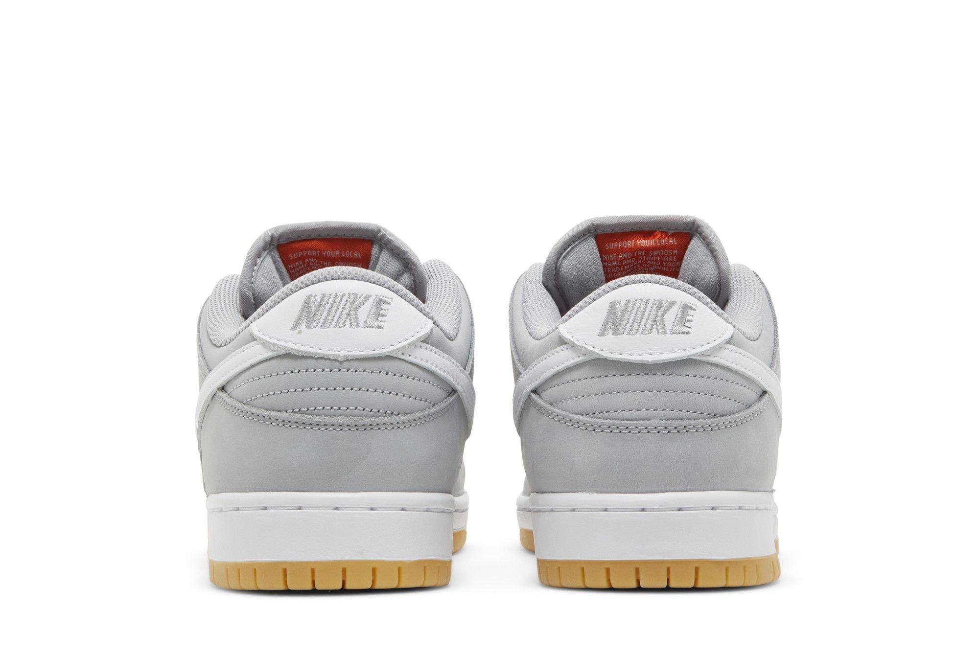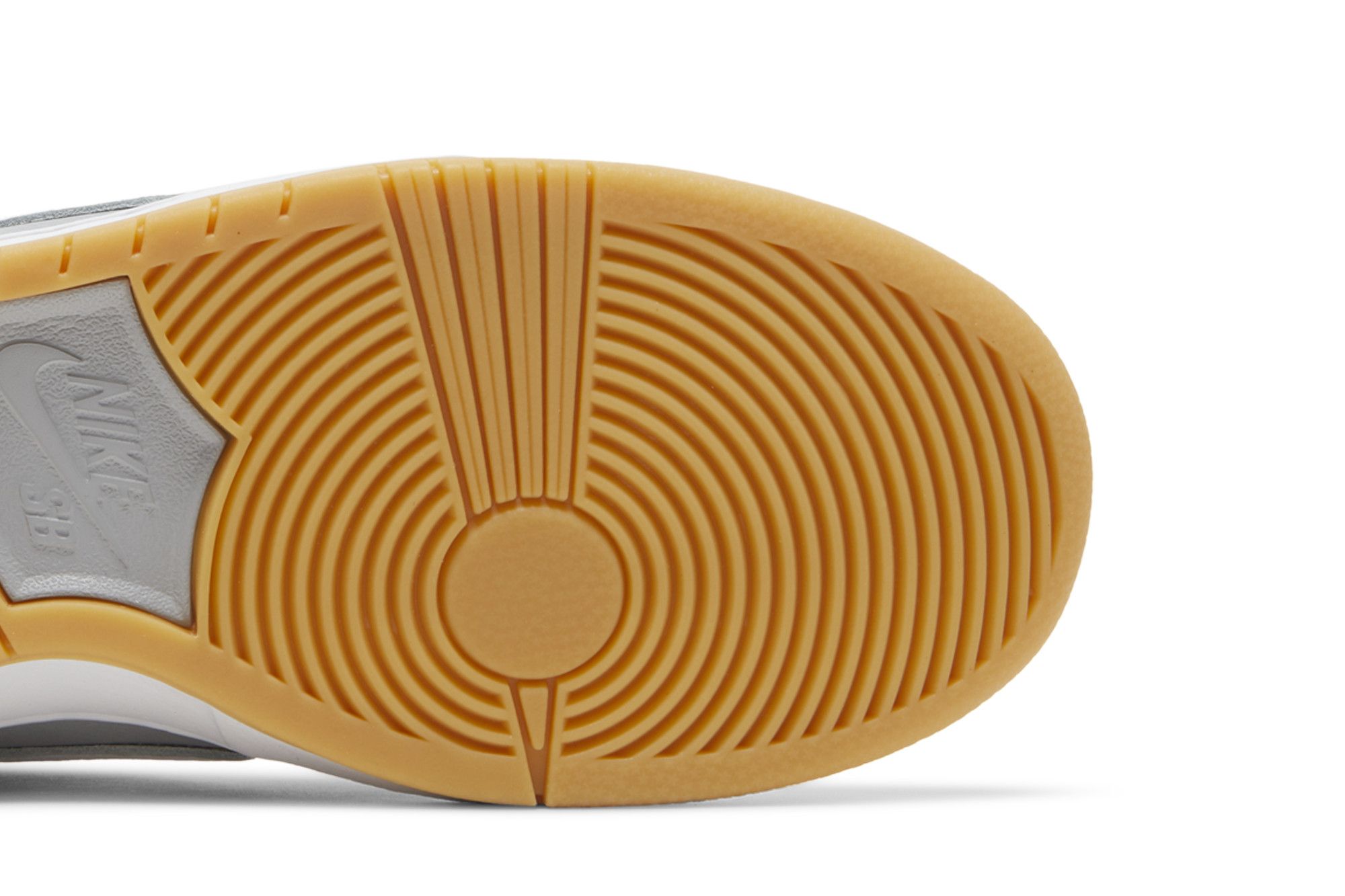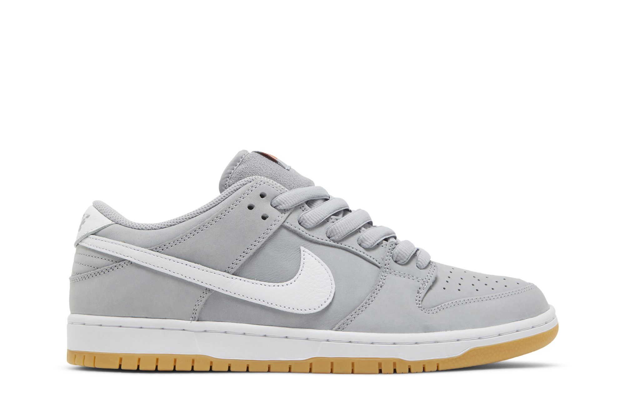 The Nike Dunk Low Pro ISO SB ‘Wolf Grey Gum’ treats the retro model to a refined and neutral makeover. A subtle shade of grey suffuses the leather upper, accented with contrasting hits of white on the signature Swoosh and Nike-branded heel tab. Atop the padded tongue, a bright orange Swoosh stands out on the woven Nike SB tag. Orange Label branding adorns the insole, featuring a springy Zoom Air unit embedded in the heel. A rubber cupsole, built with white sidewalls and a sticky gum rubber outsole, anchors the low-profile silhouette.