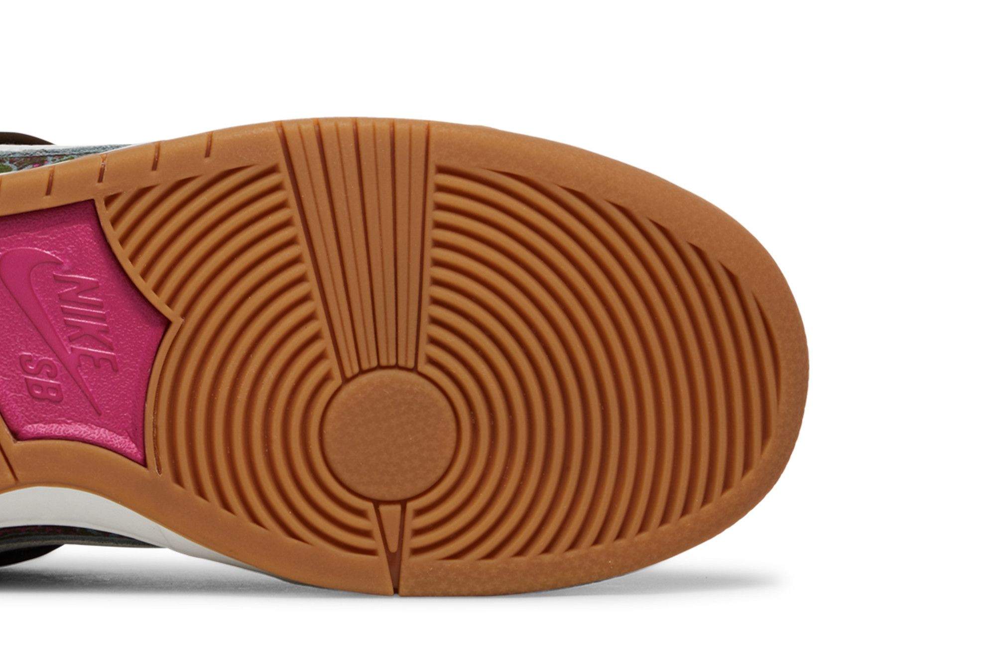 The Nike Dunk Low Pro Premium SB ‘Paisley’ treats the retro sneaker to a vintage-fashion makeover. Rendered in a blend of green, pink, blue, and brown hues, an allover paisley print permeates the textile upper, trimmed in brown leather piping and designed to tear away over time, revealing an off-white suede underlay. Branding elements include a white leather Swoosh and an embroidered Nike wordmark on the brown leather heel tab. Underfoot, a gum rubber outsole provides grippy traction.