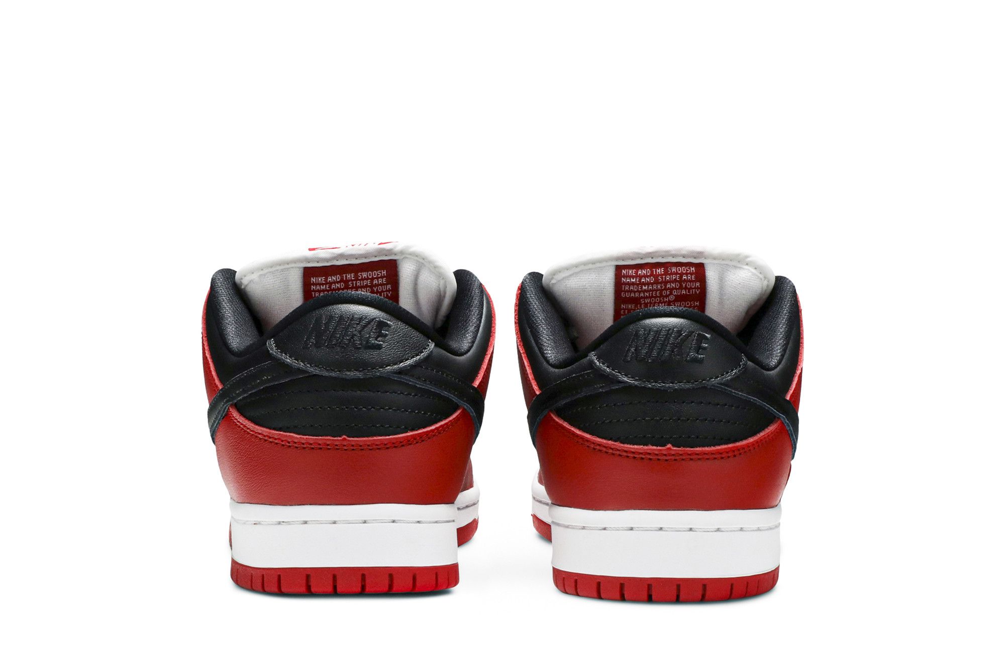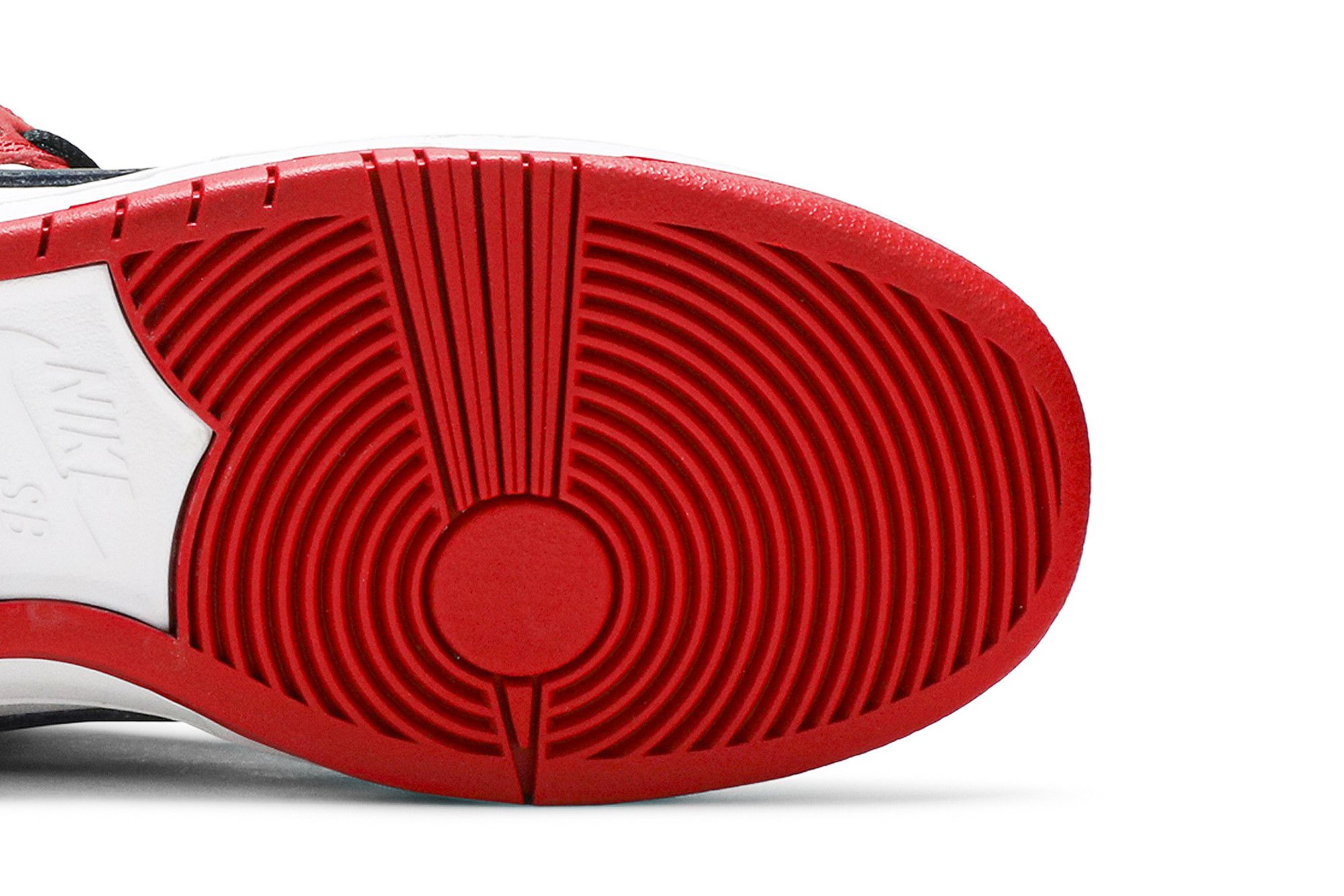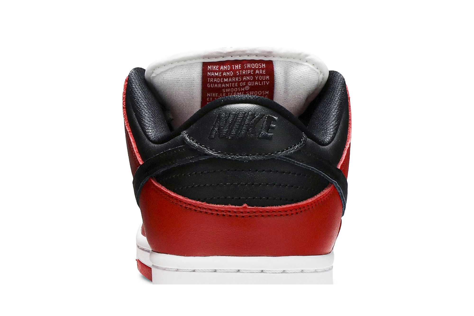 The Nike Dunk Low SB ‘J-Pack Chicago’ draws inspiration from an iconic OG colorway of the Air Jordan 1. The leather upper features a stark white base with Varsity Red overlays at the forefoot and heel. Contrasting black accents make their way to the Swoosh and back tab, marked with tonal Nike branding. Inside the shoe, the insole packs a Zoom Air unit in the heel for lightweight cushioning. Anchoring the sneaker is a rubber cupsole, highlighted by white sidewalls and a durable crimson outsole.