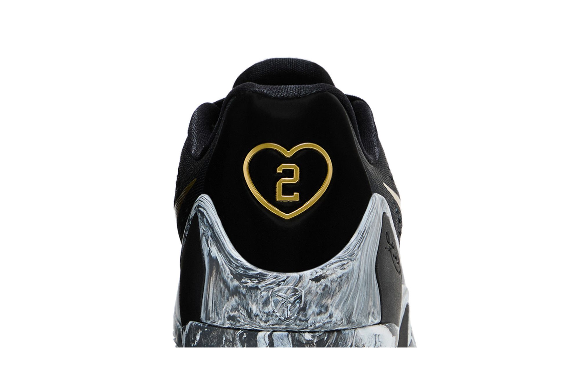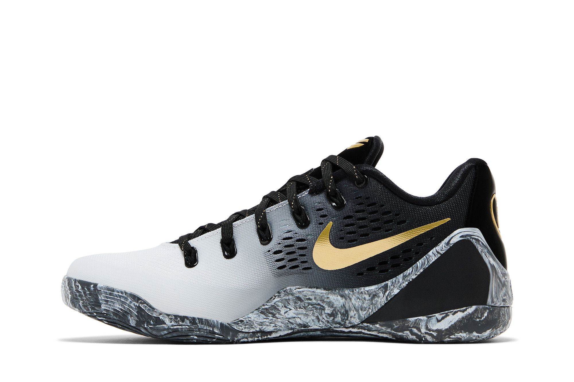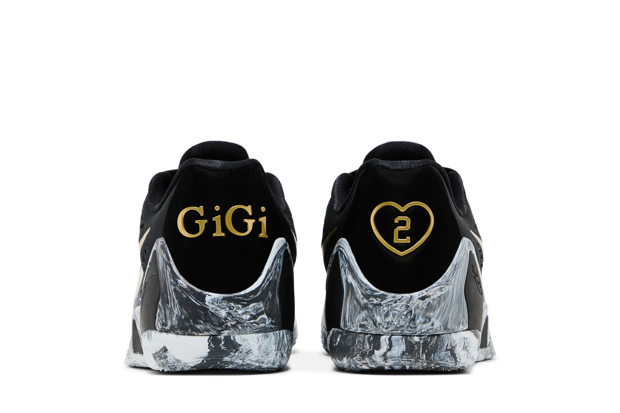 The Nike Kobe 9 EM Protro ‘Mambacita’ honors the memory of Gigi Bryant. The shoe features a grey to black gradation on the engineered mesh upper with metallic gold Swoosh branding. Additional gilded accents land on ‘Gigi’ on the back heel tab, as well as the Kobe’s shield logo atop the tongue. Flywire cables are integrated into the lacing system for a lockdown fit. The low-top is mounted on a marbled midsole, which houses a drop-in React foam midsole that replaces the Lunarlon cushioning of the original.