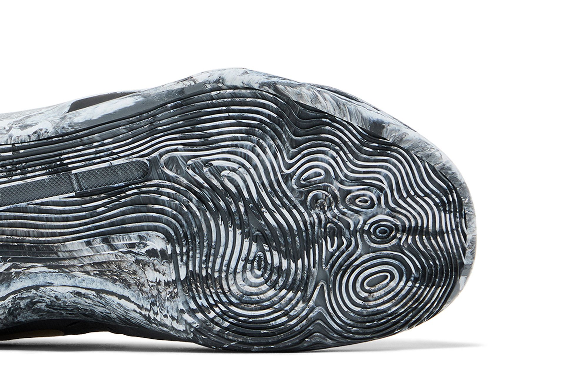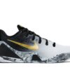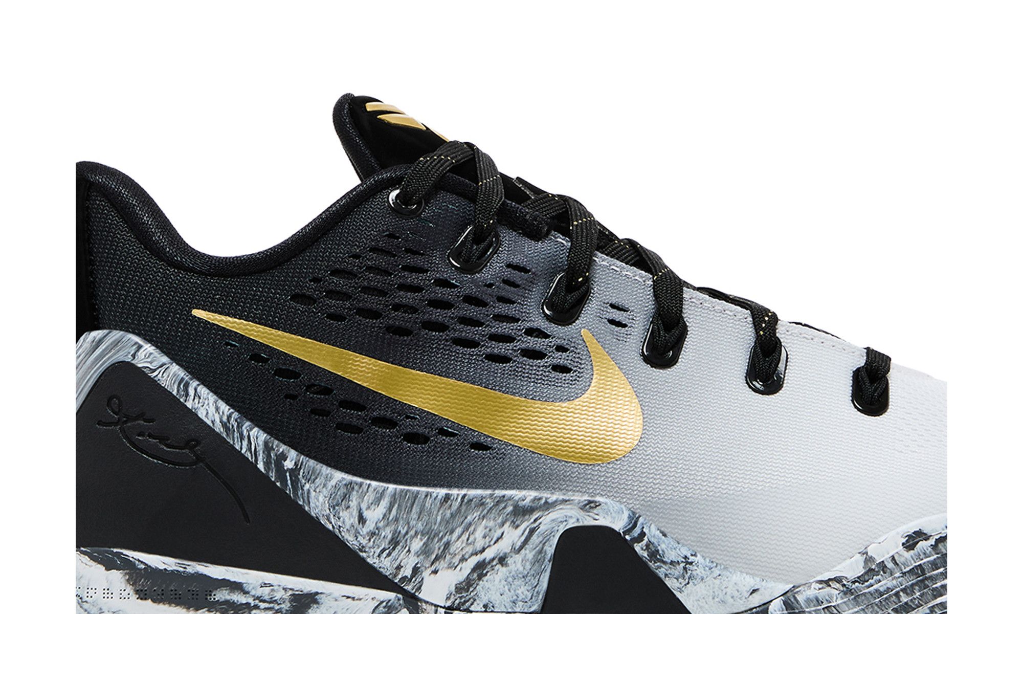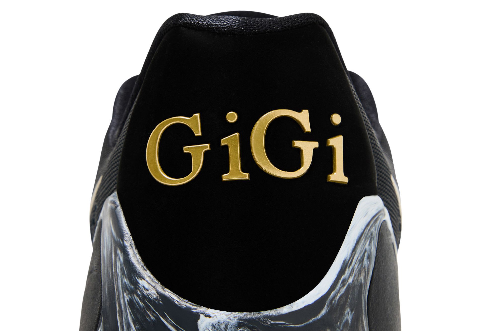 The Nike Kobe 9 EM Protro ‘Mambacita’ honors the memory of Gigi Bryant. The shoe features a grey to black gradation on the engineered mesh upper with metallic gold Swoosh branding. Additional gilded accents land on ‘Gigi’ on the back heel tab, as well as the Kobe’s shield logo atop the tongue. Flywire cables are integrated into the lacing system for a lockdown fit. The low-top is mounted on a marbled midsole, which houses a drop-in React foam midsole that replaces the Lunarlon cushioning of the original.
