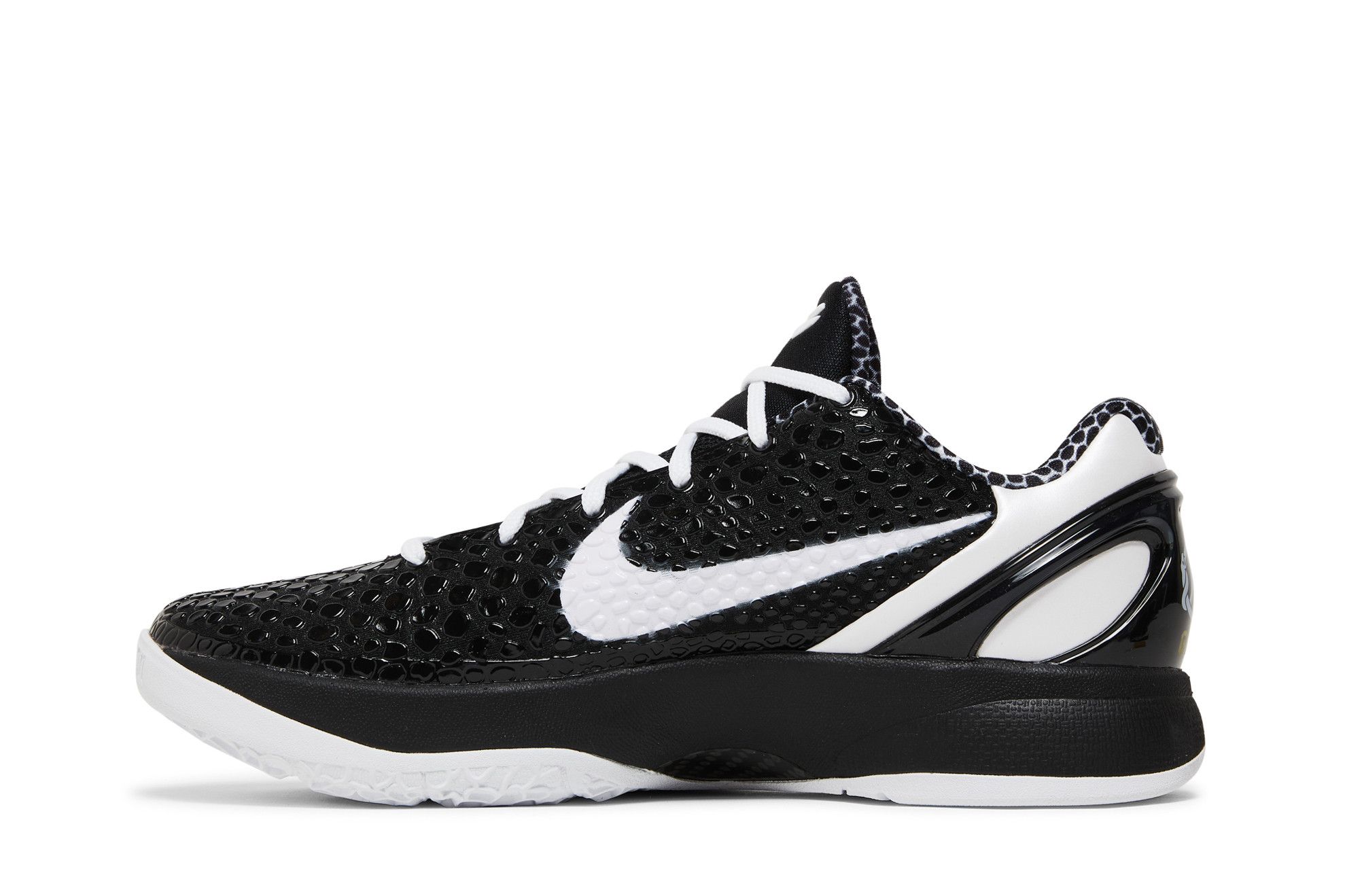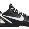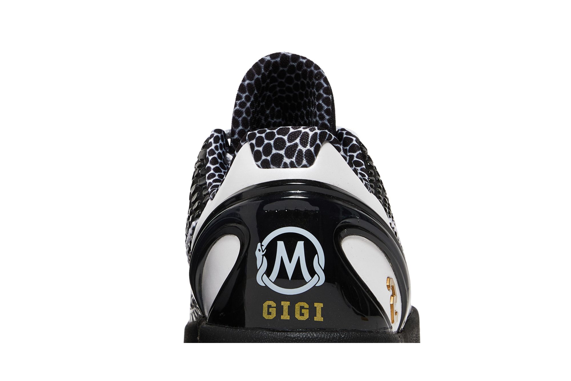 The Nike Kobe 6 Protro ‘Mambacita Sweet Sixteen’ pays tribute to Kobe Bryant and his daughter Gigi. Black snake scales on the upper reference Bryant’s Black Mamba alter ego. Notes of white appear on the Swoosh, tongue logo and leather back panels. The heel mold swaps out the traditional Kobe signature for the Mamba & Mambacita Sports Foundation crest, with “Kobe” and “Gigi” inscribed on the left and right shoe, respectively. A gilded “2” on the lateral window represents Gigi’s AAU uniform number. The insoles further honor Gigi with a design that features angel wings, a halo, the “Mambacita” and another “2.” GOAT is donating net proceeds on the sale of this item to organizations providing under-resourced communities with footwear.