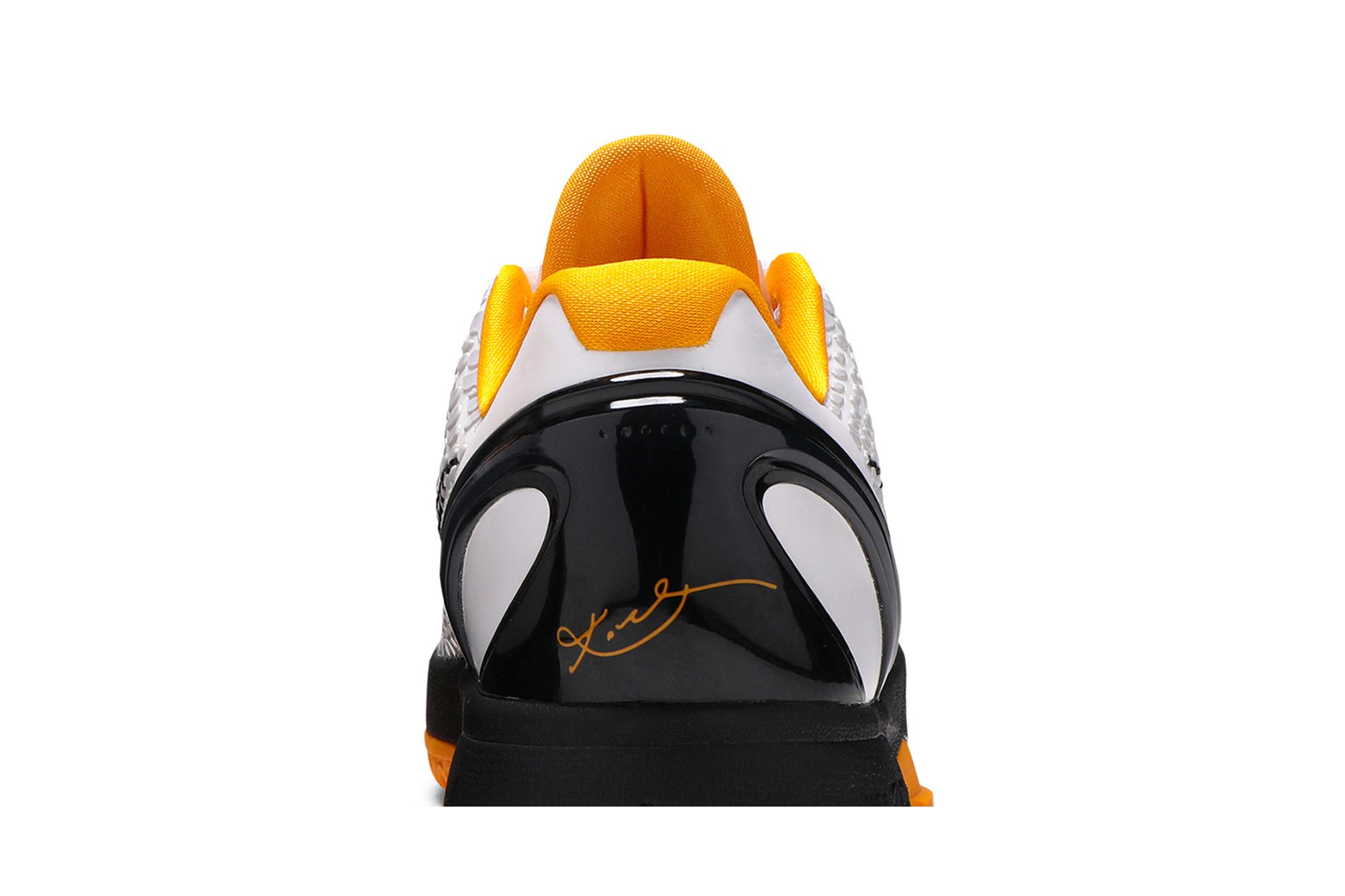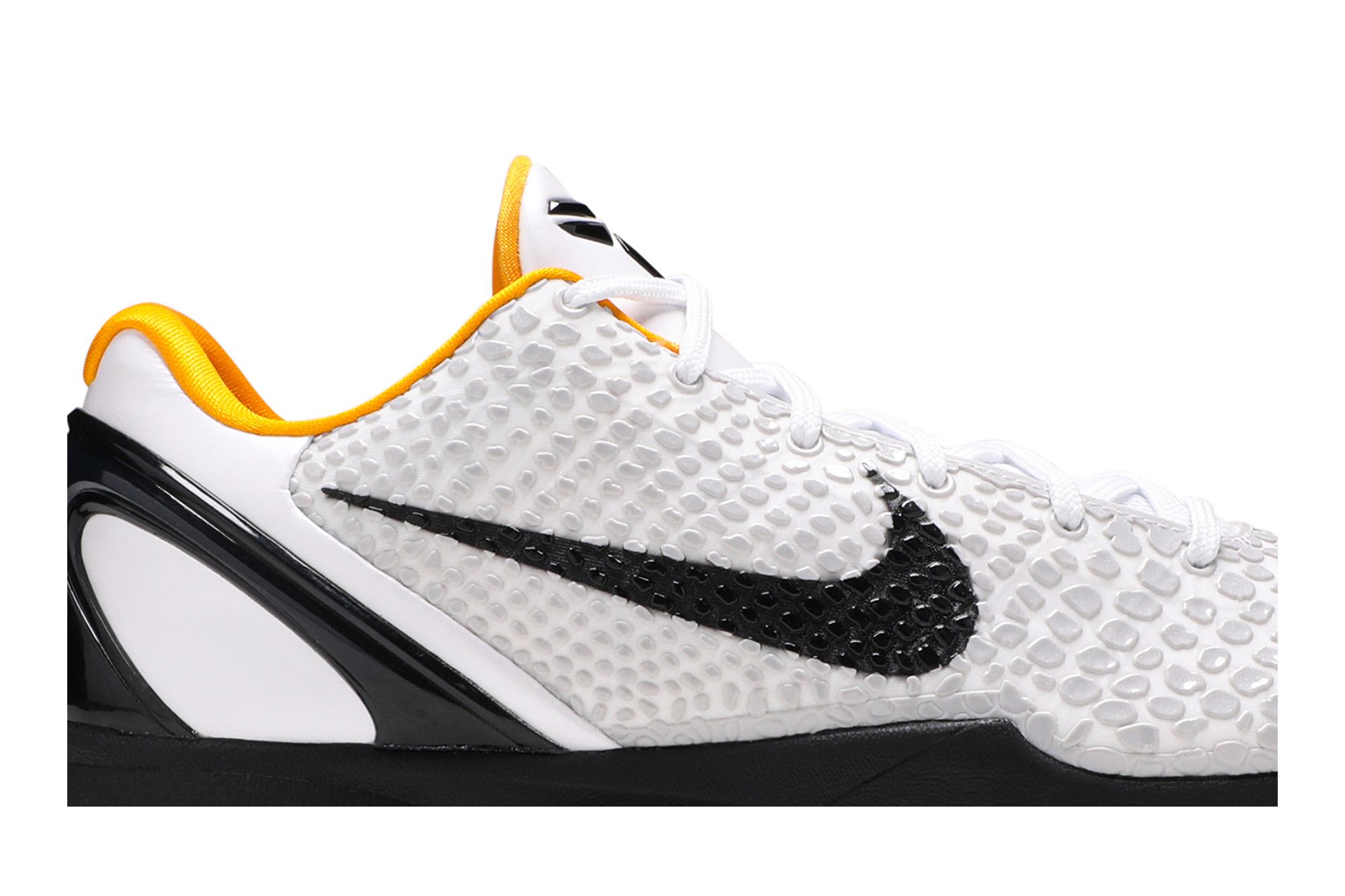 The Nike Zoom Kobe 6 Protro ‘White Del Sol’ 2021 brings back the original ‘POP’ colorway from 2011, updated with refreshed tooling and a sleeker shape. Polyurethane ‘islands’ create a scaly texture on the white and grey upper, fortified with a black molded heel counter and accented with a matching black Swoosh. The Cushlon midsole packs a large and flexible Air Zoom Turbo unit in the forefoot, along with a softer foam compound in the heel. Underfoot, the rubber outsole features a snakeskin-inspired traction pattern for maximum grip.