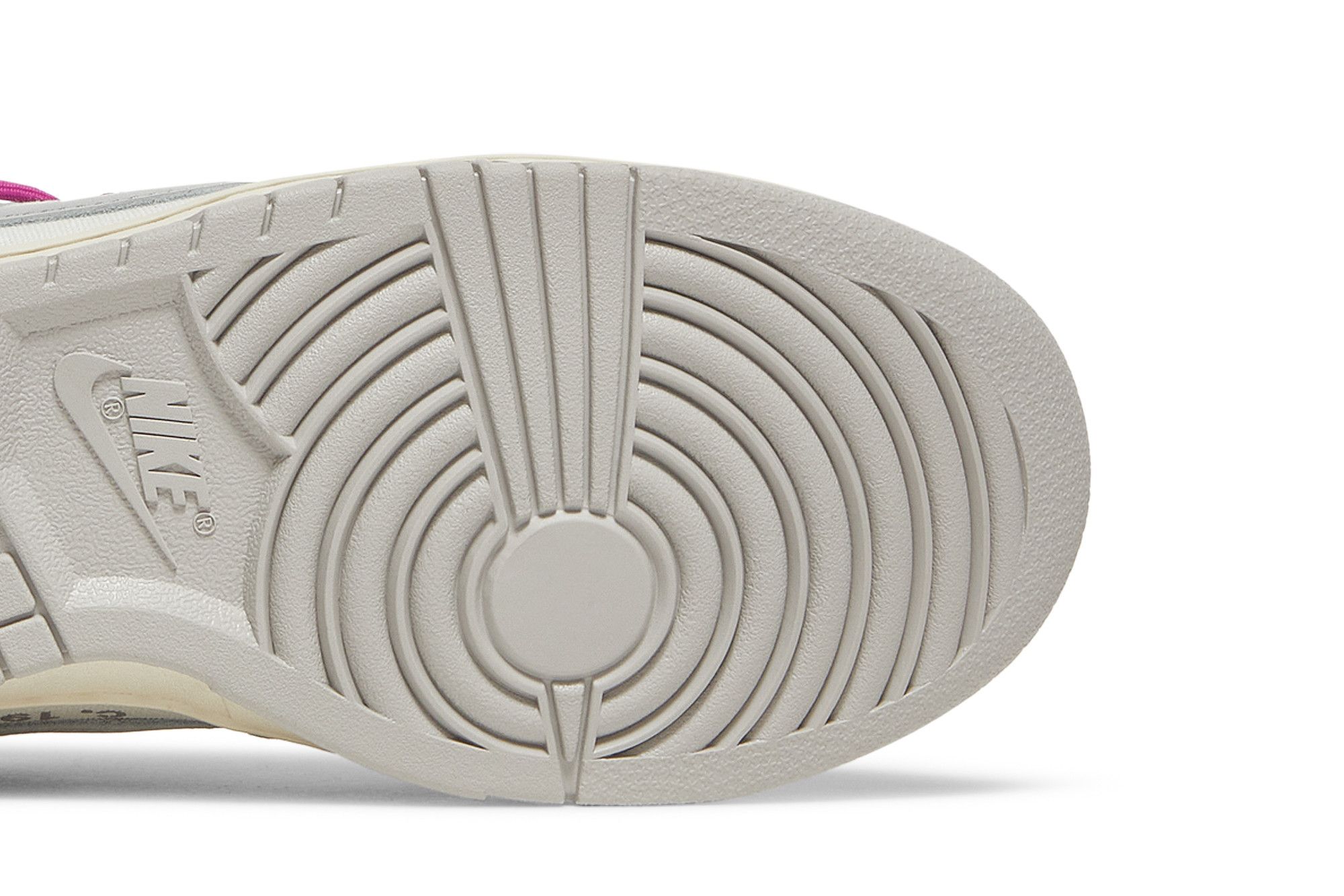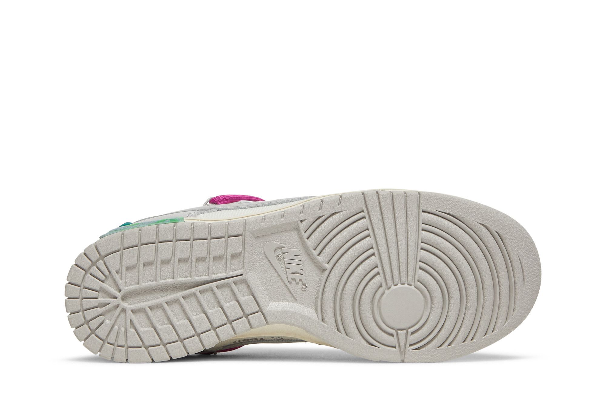 This Off-White x Nike Dunk Low is taken from the ‘Dear Summer’ collection, a sprawling follow-up to Virgil Abloh’s first Nike Dunk collaboration from 2019. The low-top makes use of a white leather upper with soft grey canvas overlays, along with Virgil Abloh’s calling-card flourishes, which include a plastic zip tie and printed Helvetica text. Contrasting pops of color arrive via the sneaker’s secondary lacing system, zip-tie, an exposed-foam tongue and a rectangular tab affixed to the Swoosh. Limited to fifty pairs, a ’30 of 50’ badge is affixed on the lateral midsole.