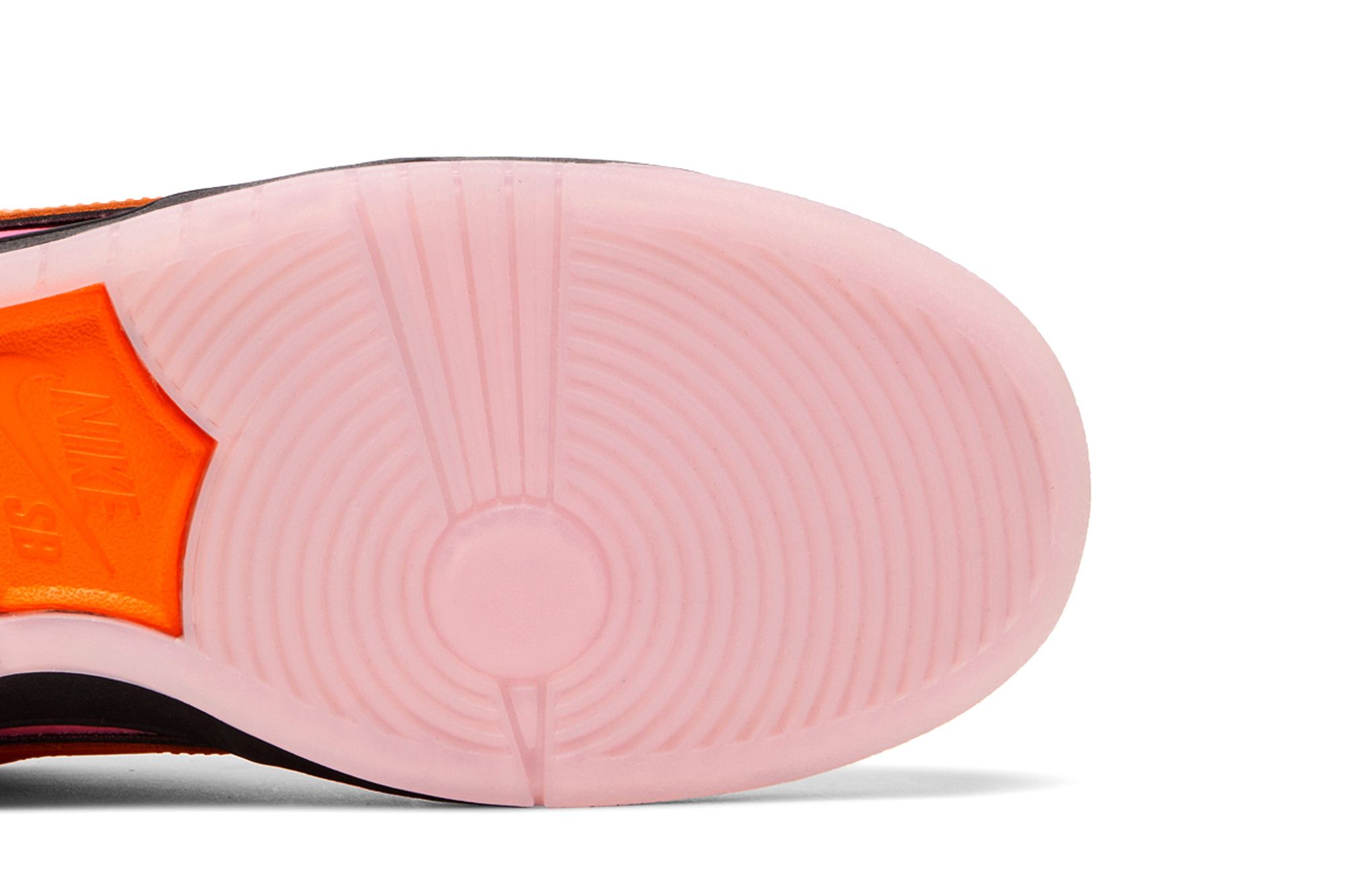 Dropping as part of a footwear collection centering around the popular animated television series, the Powerpuff Girls x Nike Dunk Low Pro SB QS ‘Blossom’ makes use of a pink nubuck upper, highlighted with an orange Swoosh and reflective black piping. Satin lines the padded collar and stuffed tongue, featuring a woven Nike SB tag and the Powerpuff Girls logo in a repeating pattern. Unique details include Blossom’s big eyes embroidered on each heel tab, along with custom graphic insoles with Nike Zoom Air cushioning embedded in the heel. The sneaker rides on a black midsole and a pink-tinged translucent rubber outsole.