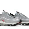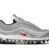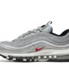 The Nike Air Max 97 OG ‘Silver Bullet’ is a celebrated retro release paying homage to the iconic 1997 design. Featuring a metallic silver upper inspired by mid-90s mountain bike finishes, it showcases 360-degree reflective piping, red accents, and an embroidered mini Swoosh. This model includes the original full-length visible Air cushioning for comfort and a sleek, futuristic aesthetic. Its blend of synthetic and mesh materials offers durability and breathability, maintaining the style and performance that made the silhouette legendary. The shoe remains a coveted classic in sneaker culture.