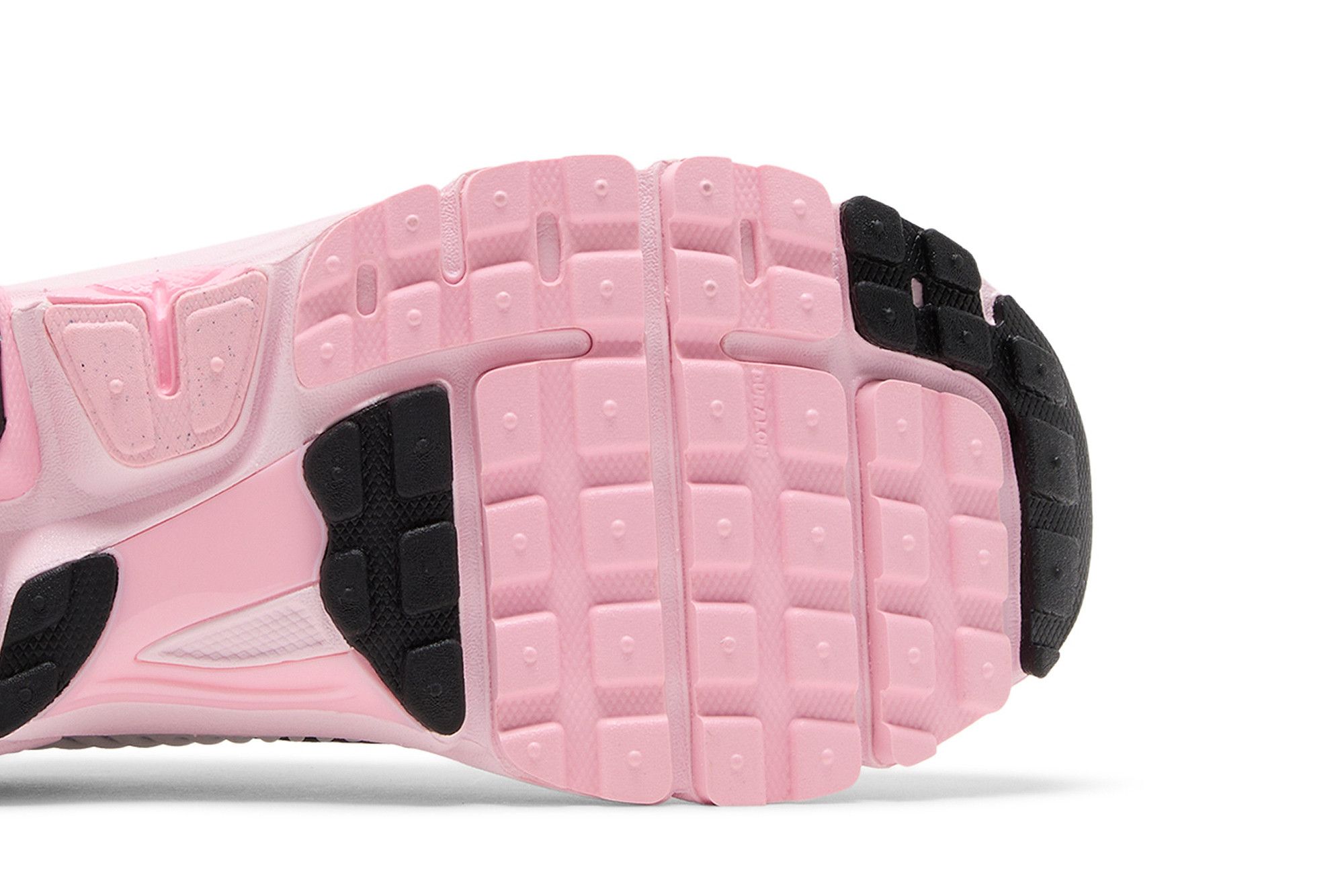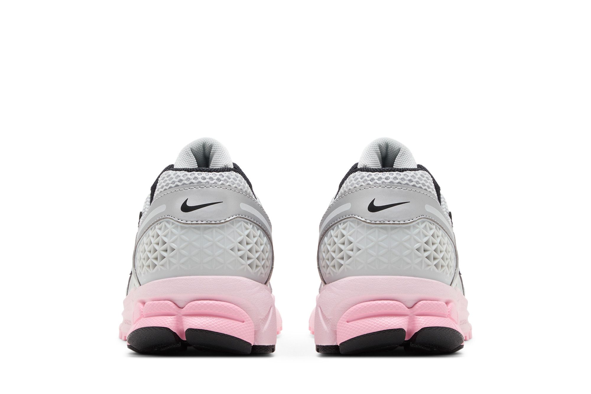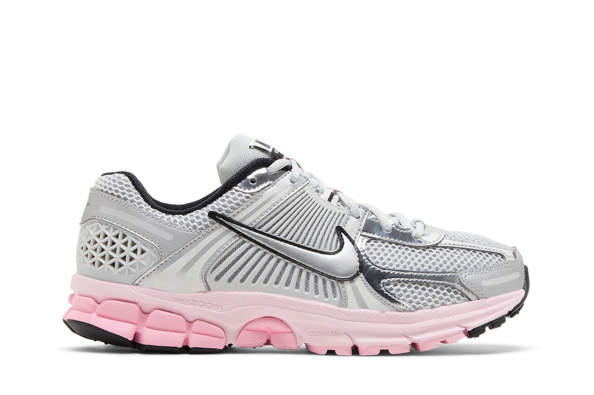 The Nike Women’s Air Zoom Vomero 5 ‘Photon Dust Pink Foam’ spotlights varying shades of pink on the full-length Cushlon foam midsole, fitted with Zoom Air cushioning in the forefoot and heel. The upper features white open-cell mesh, accented with a metallic silver Swoosh atop the TPU midfoot cage. The layered design is further enlivened with 3M accents and mirror-reflective detailing on the eyestay and forefoot overlay.