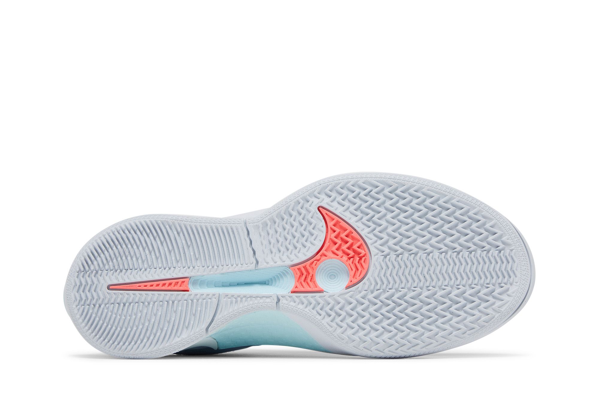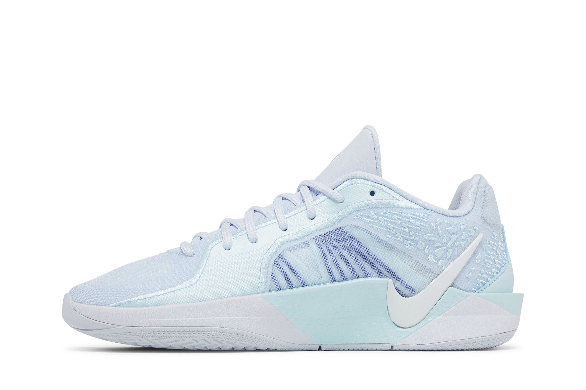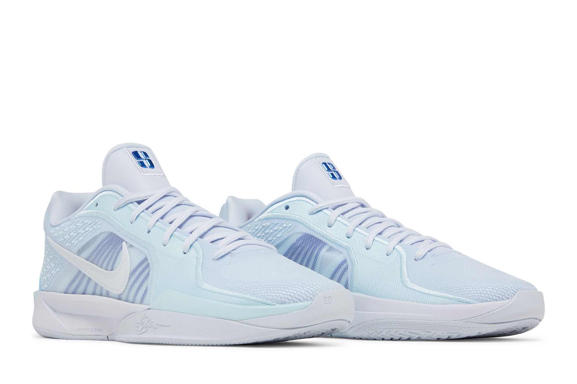 The Nike Women’s Sabrina 2 ‘Conductor’ dresses Sabrina Ionescu’s second signature shoe in pastel shades of blue. A supportive ‘S’ frame wraps around the mesh upper, which is decorated with tonal stitching and embroidery that nod to Sabrina’s initials and jersey number. The sneaker rides atop a lightweight Cushlon midsole with a Zoom Air unit in the forefoot. The rubber outsole features an ‘S’-inspired herringbone pattern for multidirectional grip.
